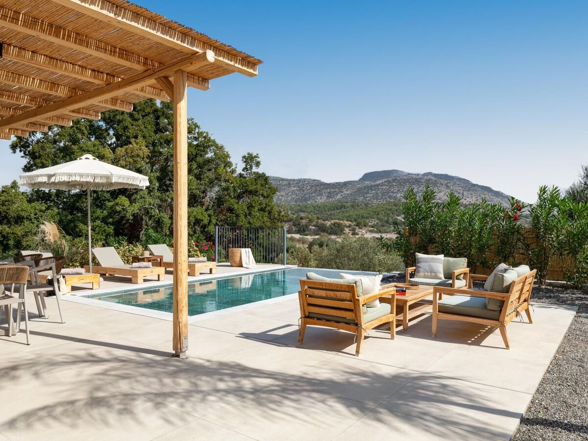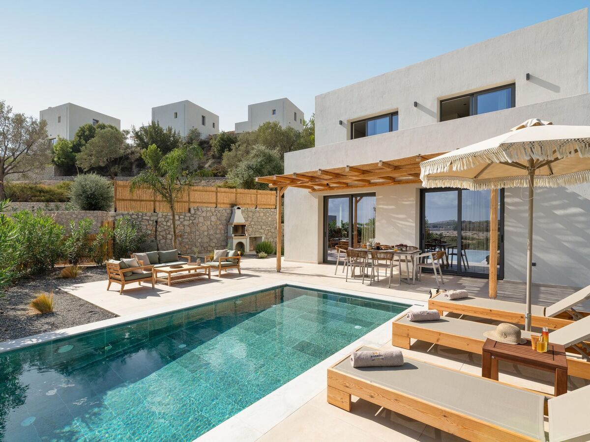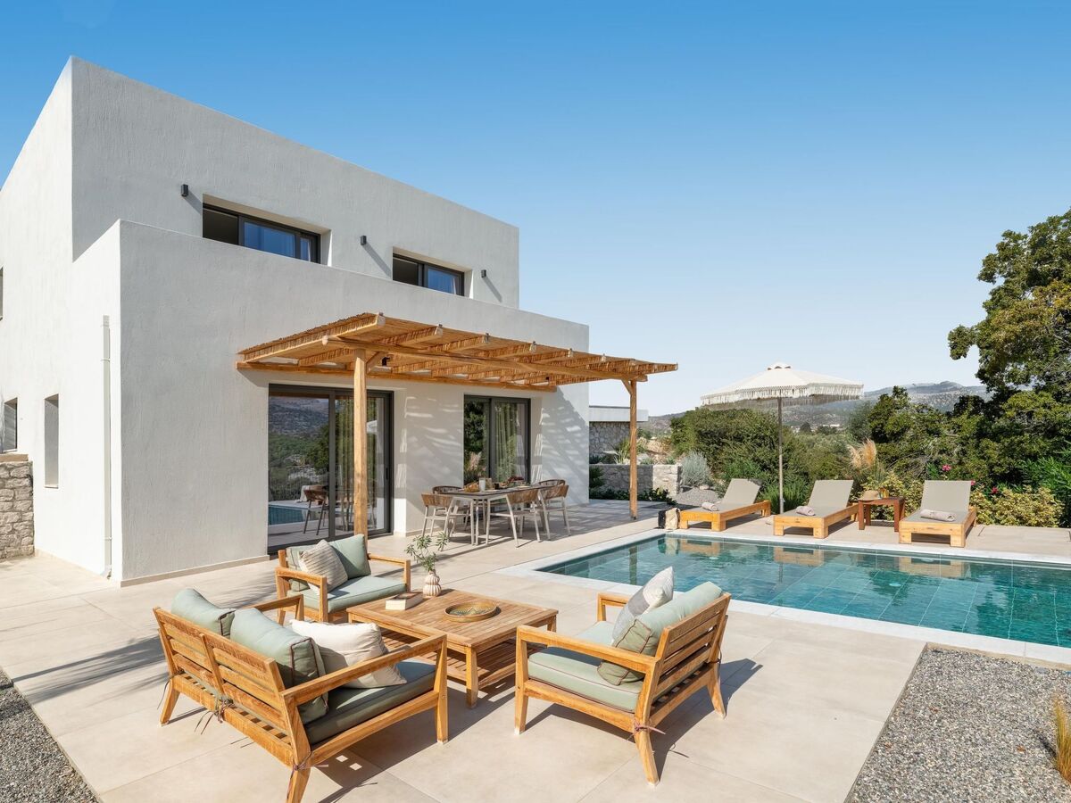 Outdoors, there’s a private swimming pool with sunbeds and a seating area where you can relax under the rays of the Aegean sun.