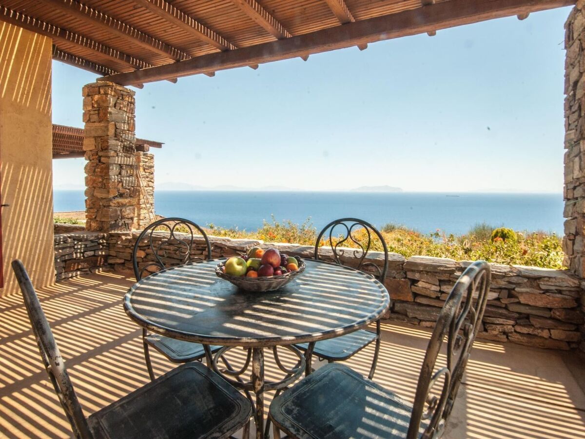 It is on the east coast of the island of Kea on the top of a hill, near a wild gorge with a view over the Medterranean Sea.