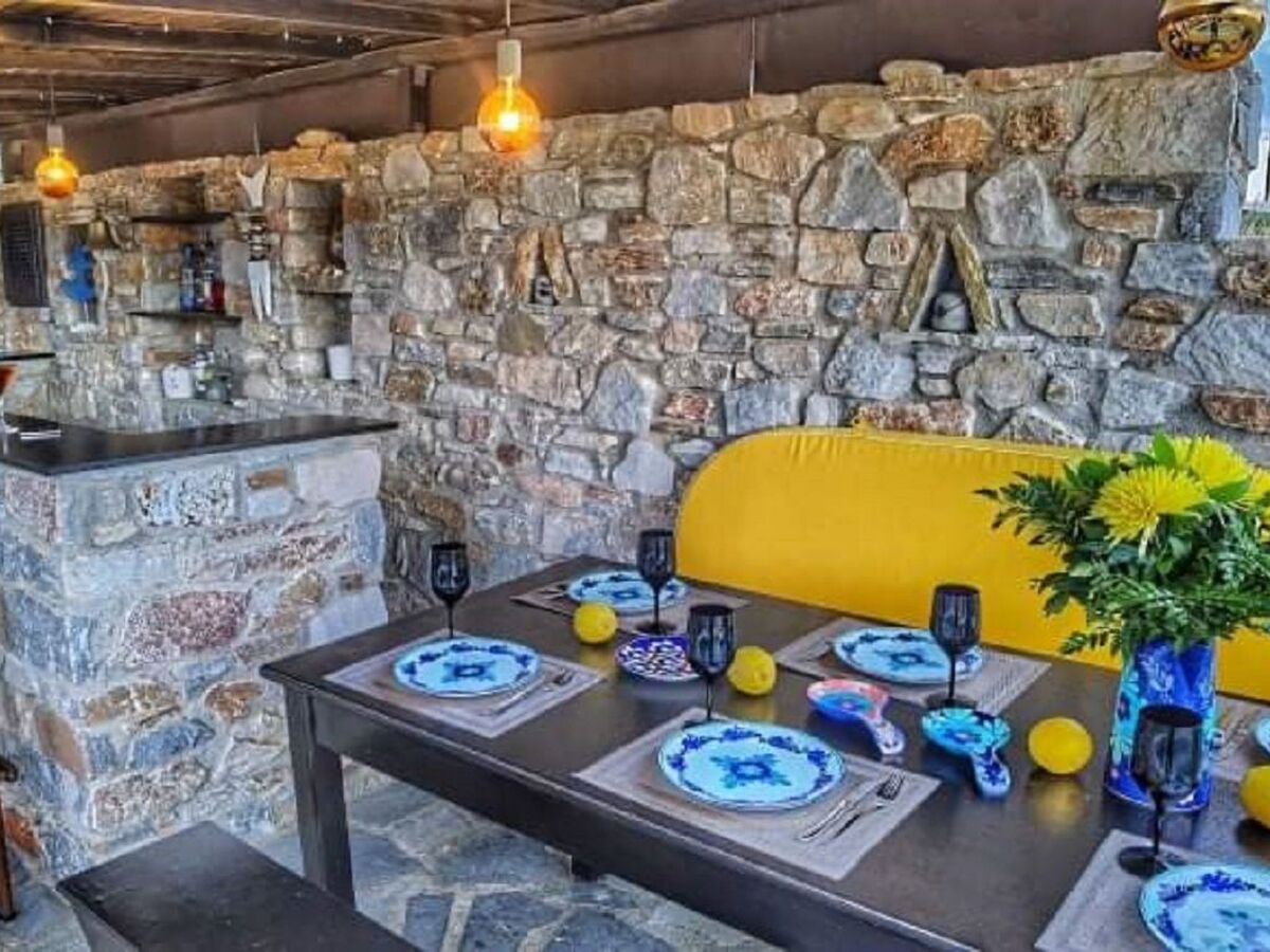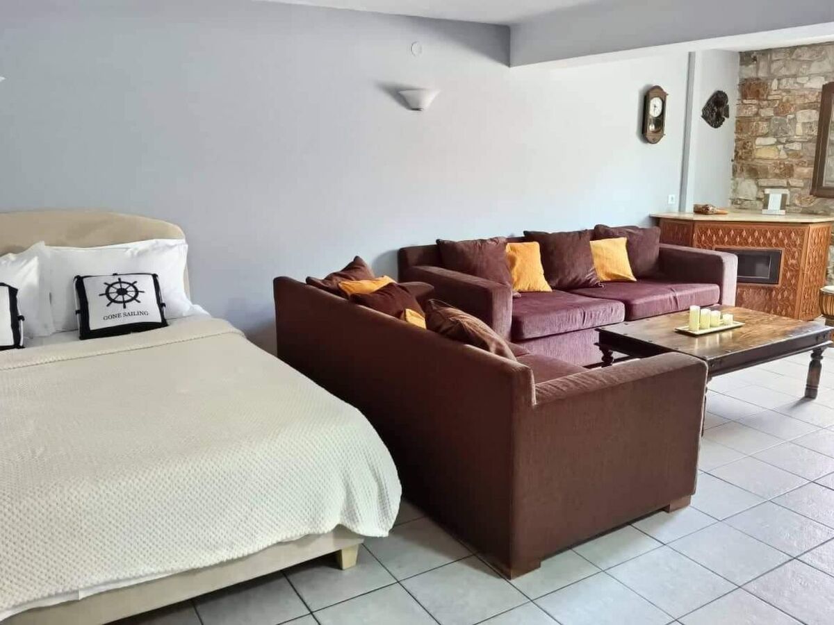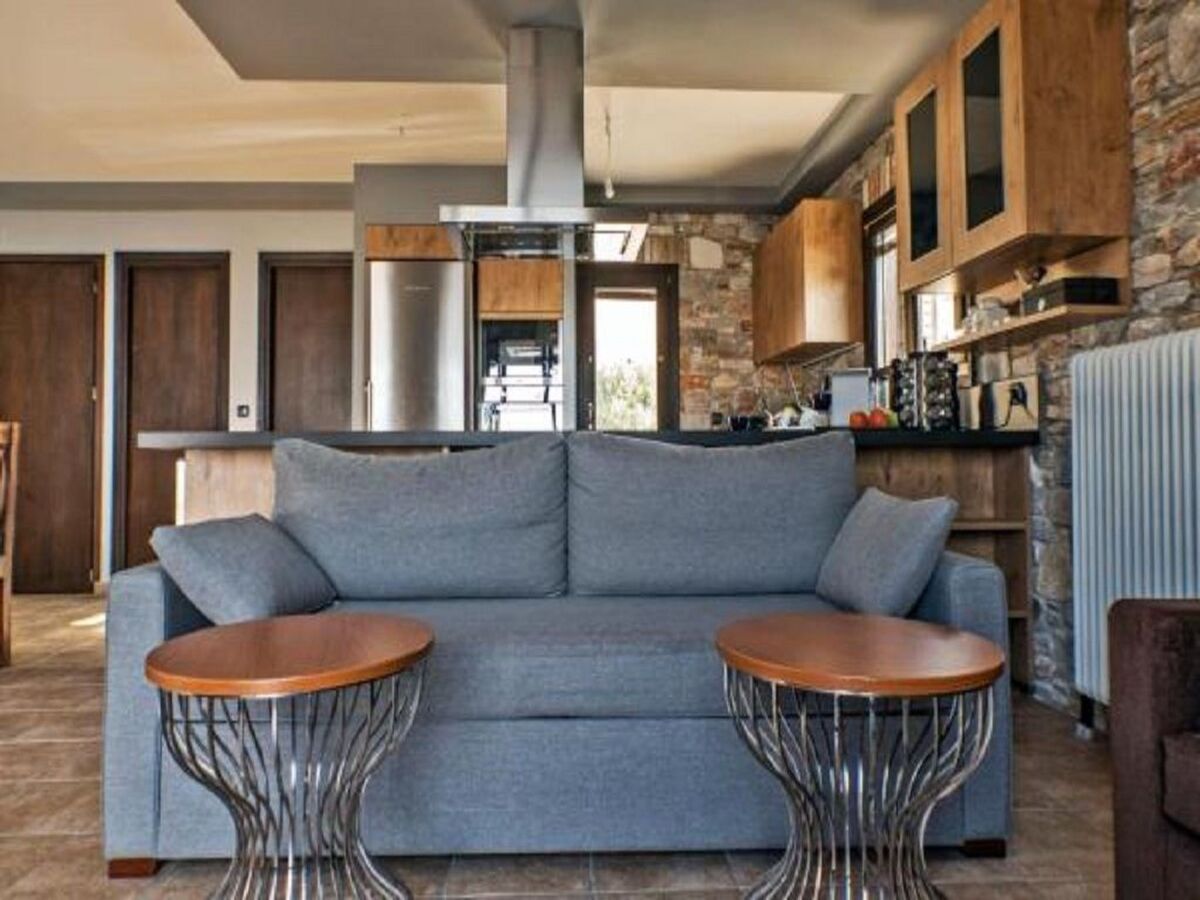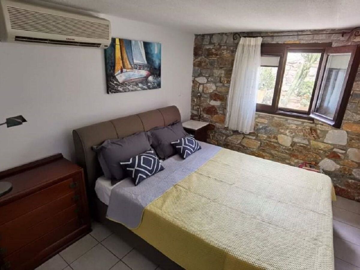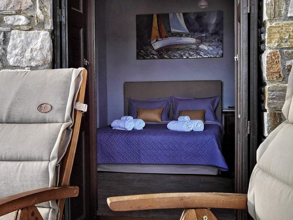 Toute la partie frontale de la résidence est constituée d’une spacieuse véranda, offrant une vue captivante sur la nature et le bleu infini de la mer Egée.Le rez-de-chaussée comporte deux chambres à coucher doubles, et un lit double supplémentaire qui ne bénéficie pas d’une chambre à part, mais qui est tout de même positionné à un endroit très calme de cette partie de la résidence, offrant à ses occupants un repos assuré.Il n’est pas rare que nos hôtes préfèrent coucher leurs enfants en bas âge sur ce lit.