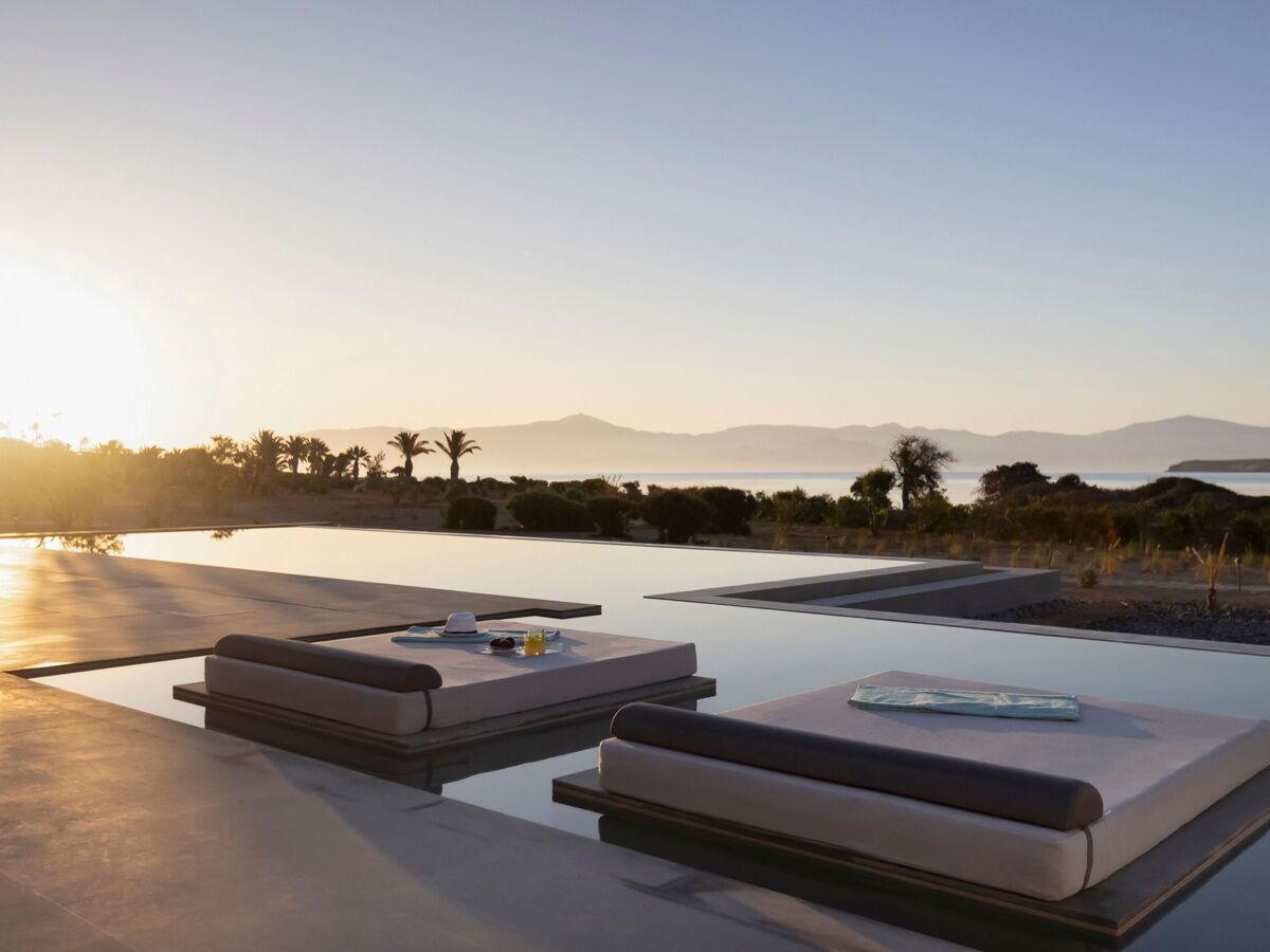 The villa'est tout à fait spectaculaire, avec une superbe piscine à débordement comme pièce maîtresse, où les hôtes peuvent se baigner tard dans la nuit sous les étoiles.