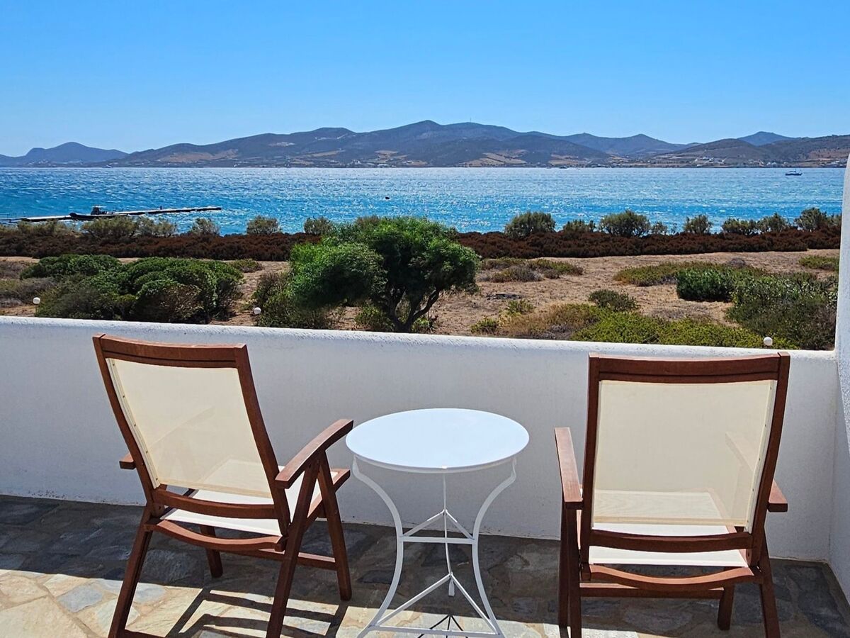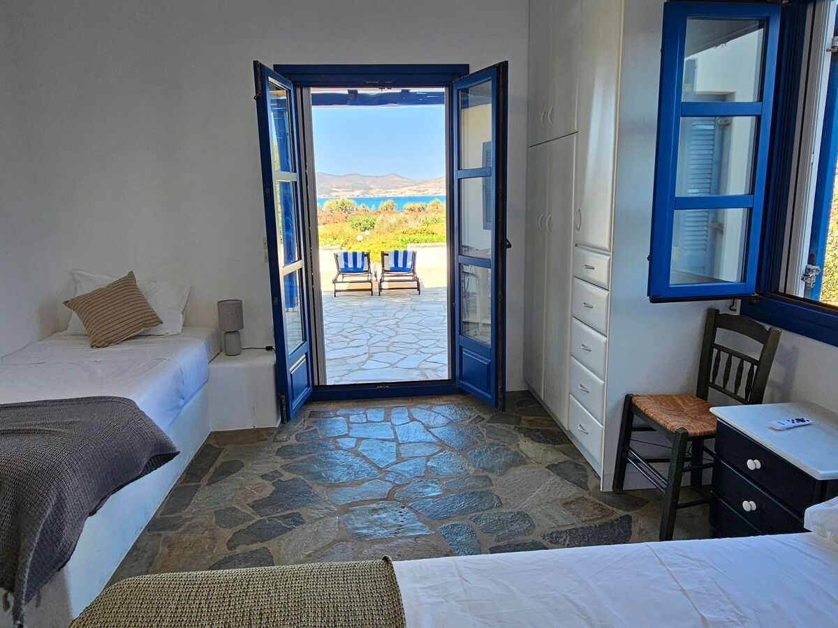 Cette grande maison traditionnelle de Paros est située en bord de mer, face à l'île d'Antiparos, et offre une vue imprenable sur le coucher de soleil.