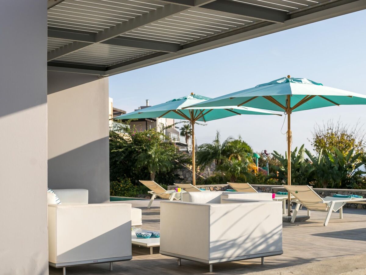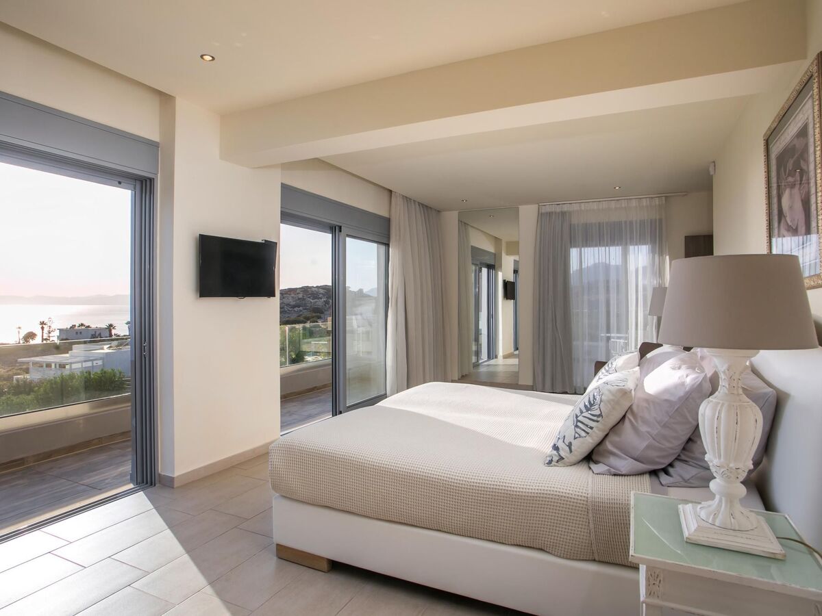 It offers spacious rooms, a private pool, and a stunning view of the sea.