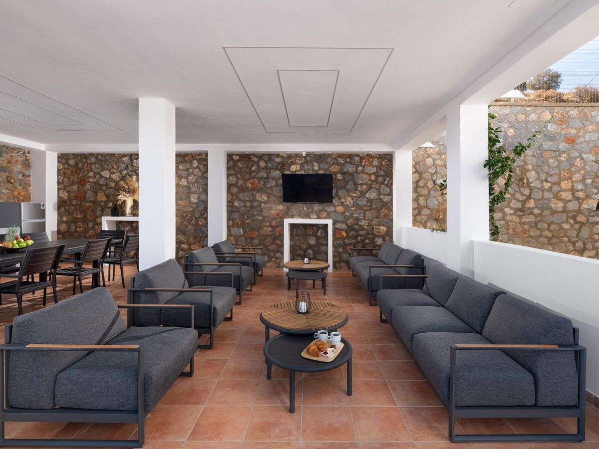 The villa is only 1.5 km from a pristine beach and 600 meters from a bus station, offering easy access to nearby attractions.