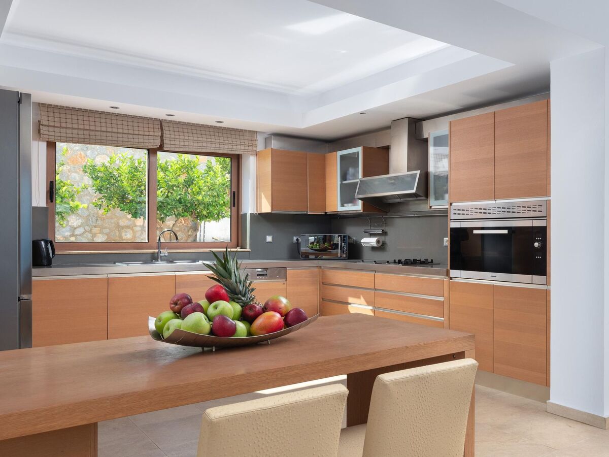 The villa boasts a comfortable living room, perfect for unwinding, and a fully equipped kitchen designed for creating memorable meals together.