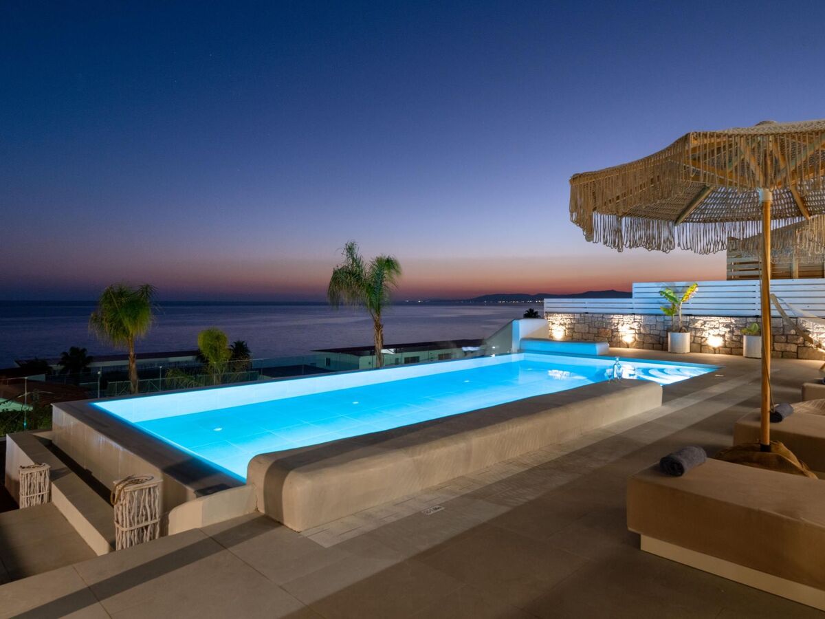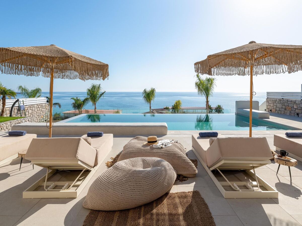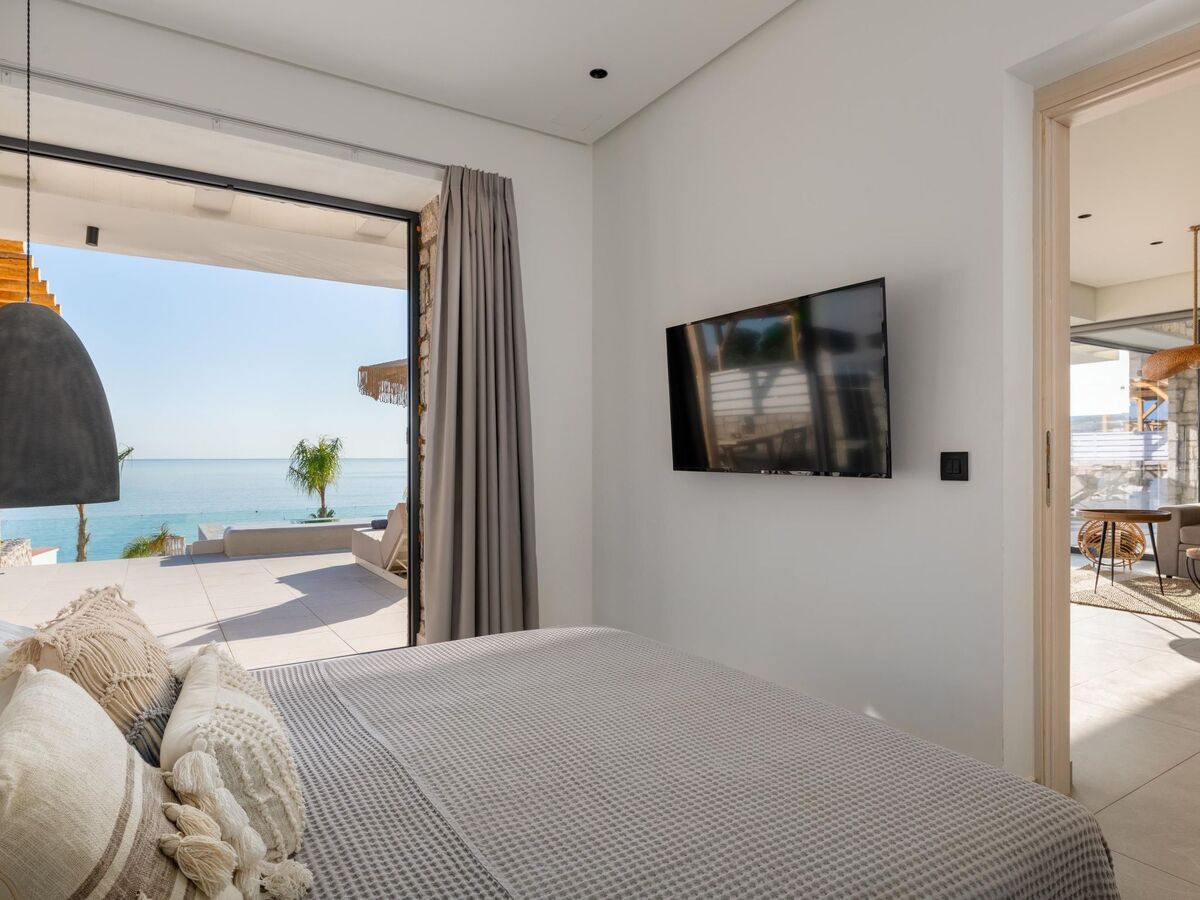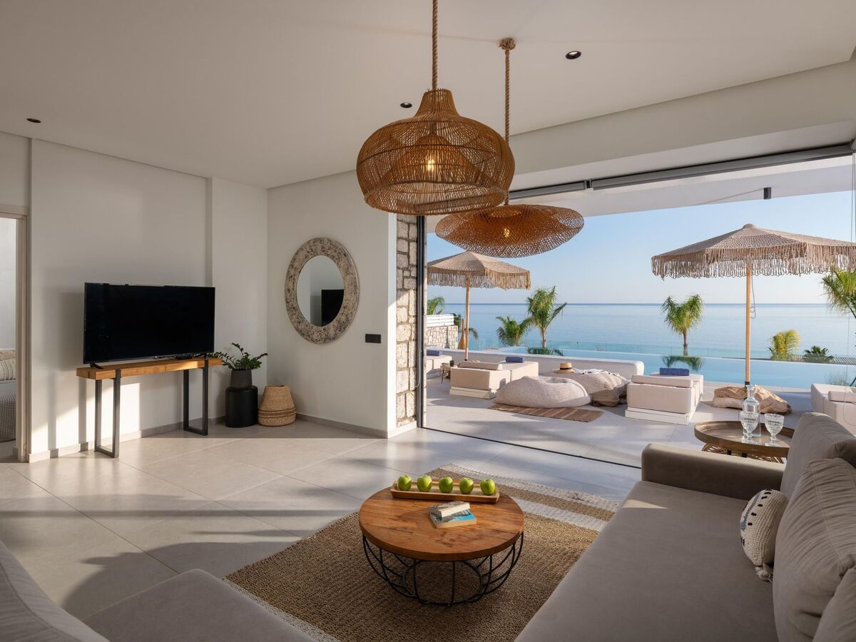 All of them have kinged sized beds, smart TVs and balconies that lead to a fantastic view of the private swimming pool and the endless sea.