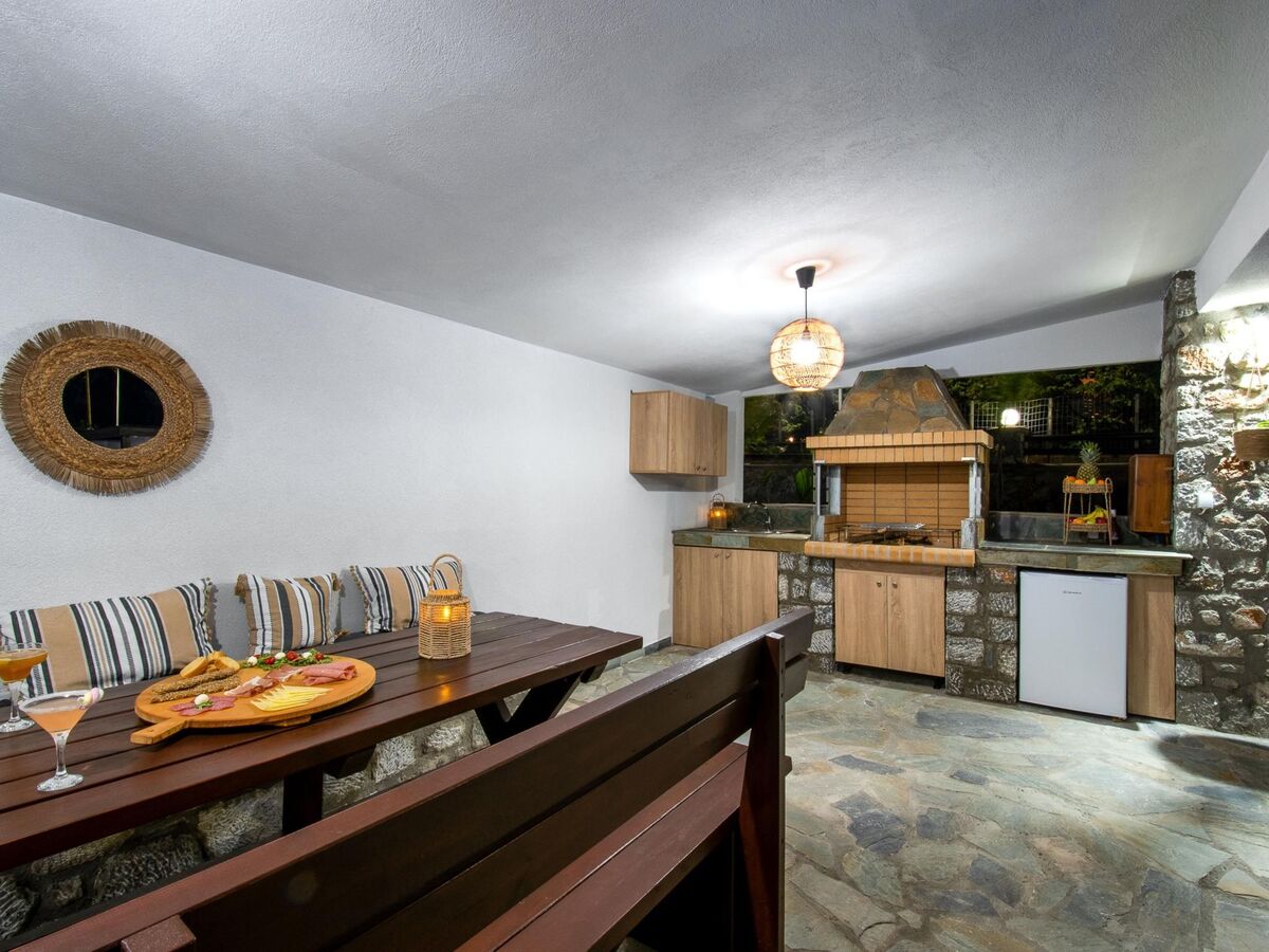 This beautiful villa has an amazing outdoor garden area with a swimming pool, seating areas, sunbeds, parasols and kiosks, children’s playgrounds, outdoor sports facilities, and a great stone-built BBQ.