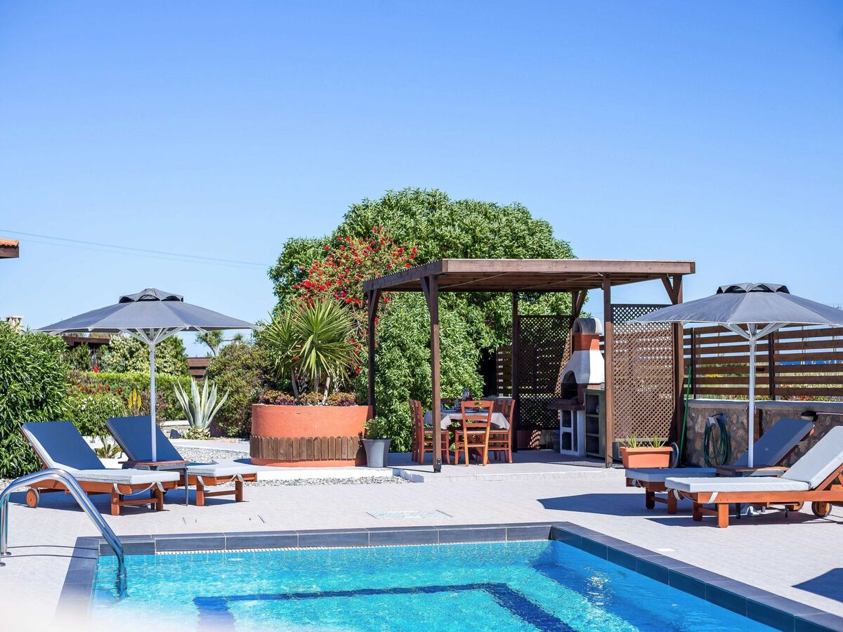 The holiday villa has a private pool with large sun terrace and barbecue area.