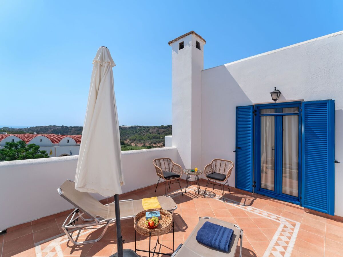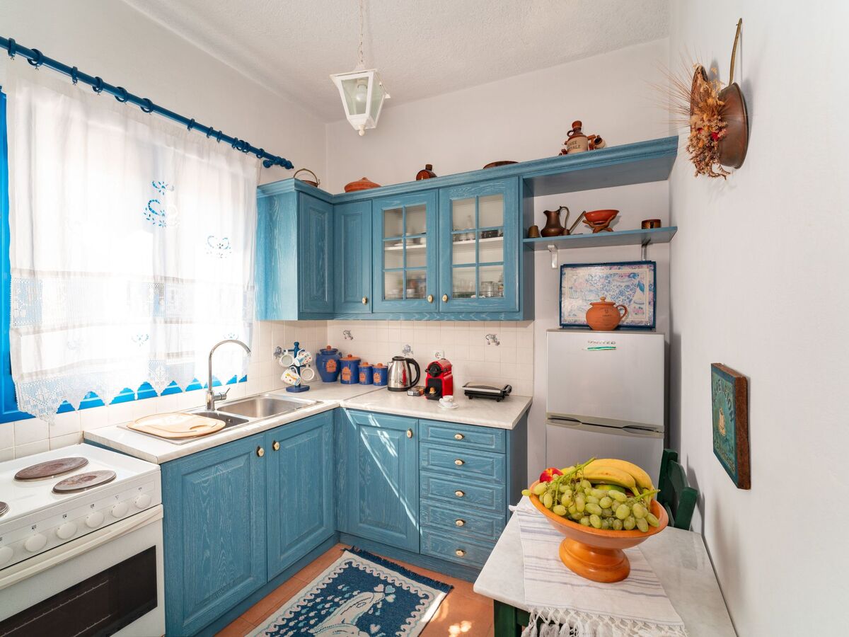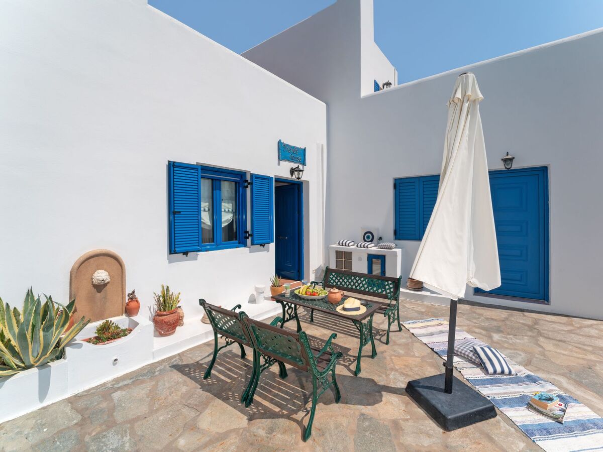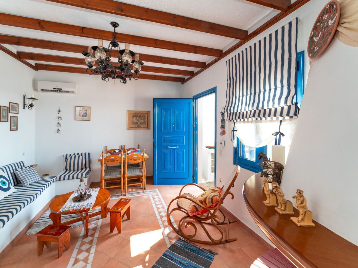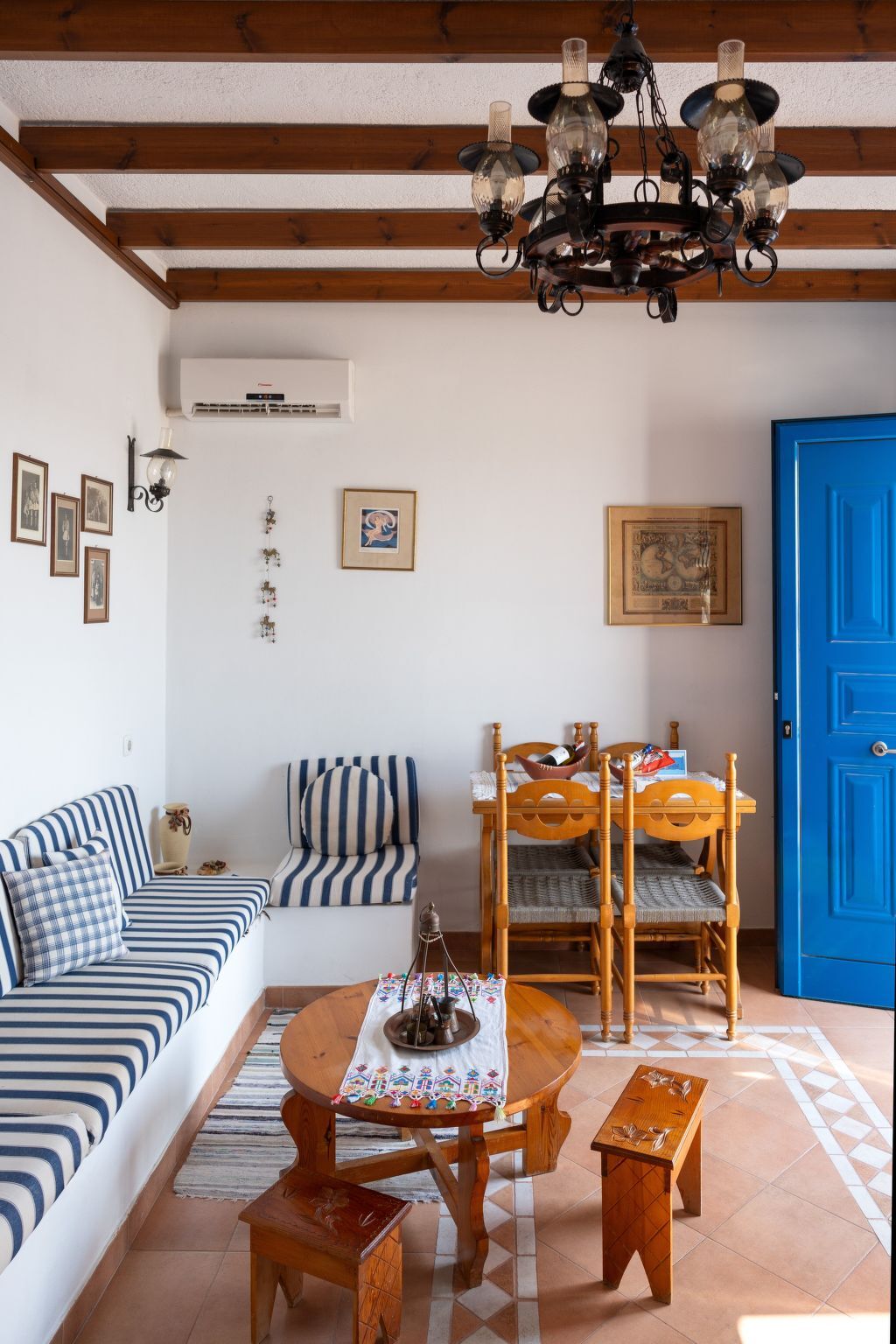 This traditional Greek house, with its distinctive white and blue hues, captures the essence of Aegean island life, making it an ideal choice for families or groups of friends.