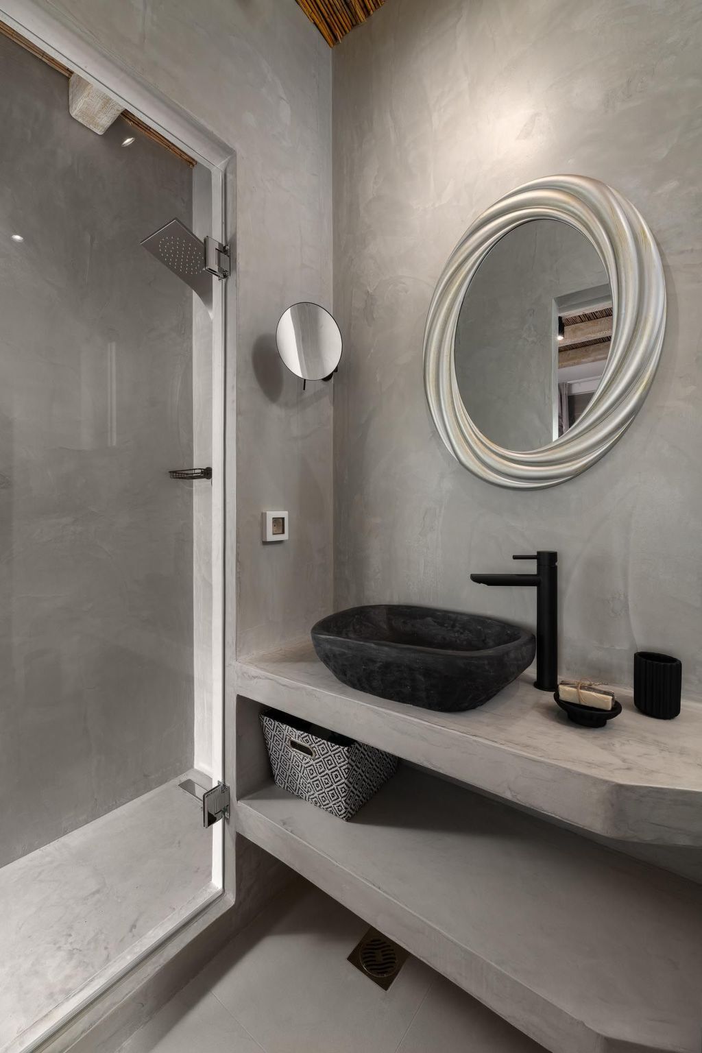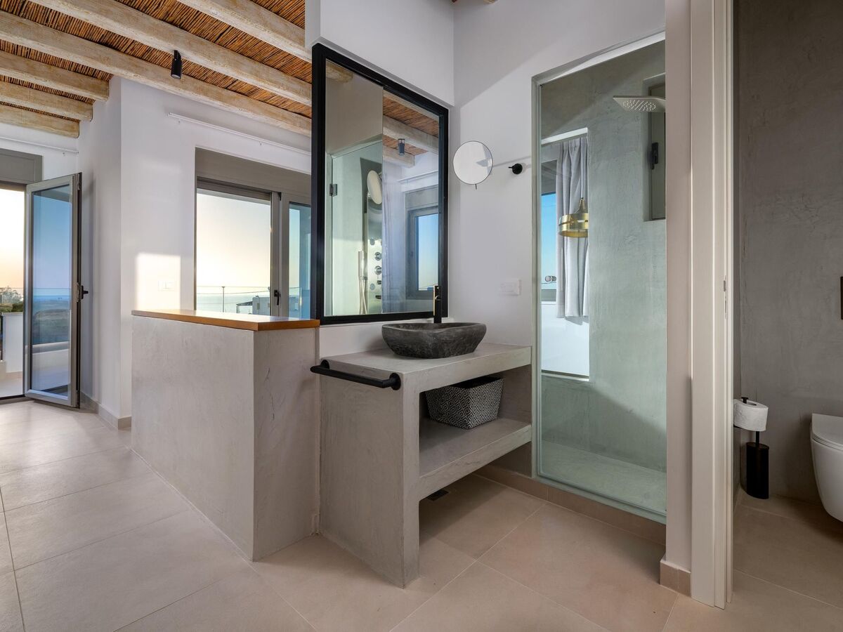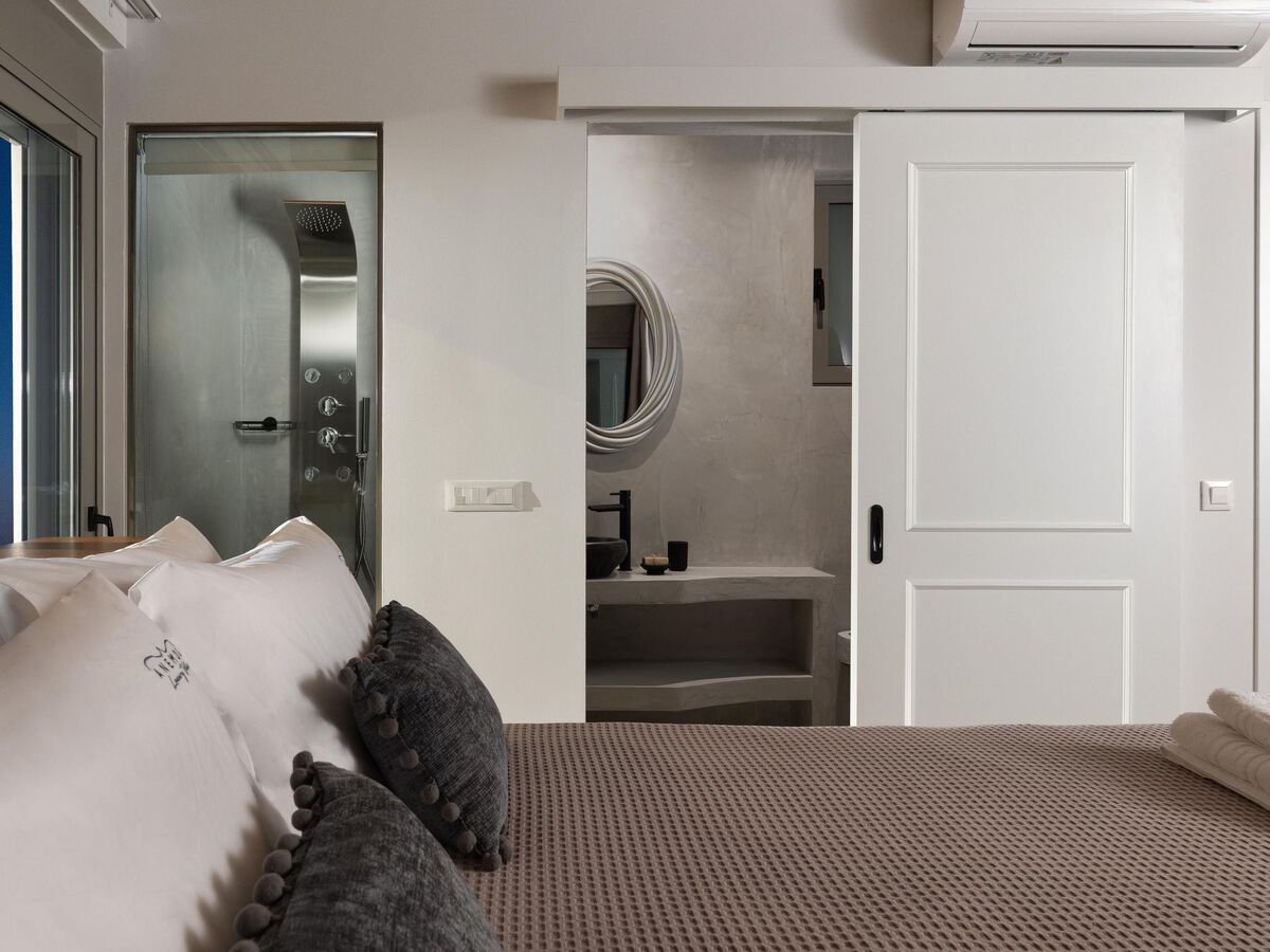 Les deux chambres possèdent une salle de bain attenante avec une douche élégante et un balcon meublé chic avec une vue remarquable sur la mer.