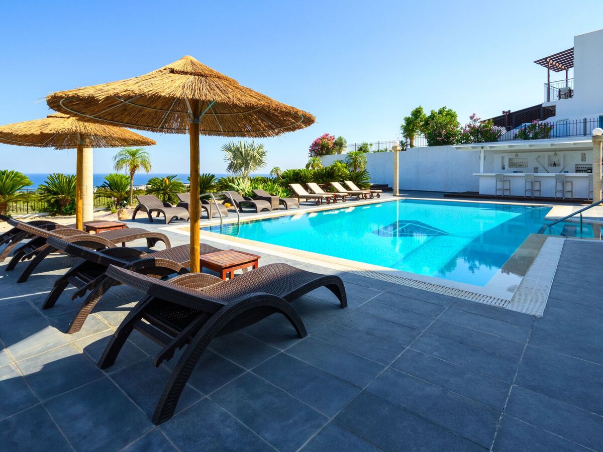 From the balconies, you can admire the beautiful emerald waters of Rhodes.
