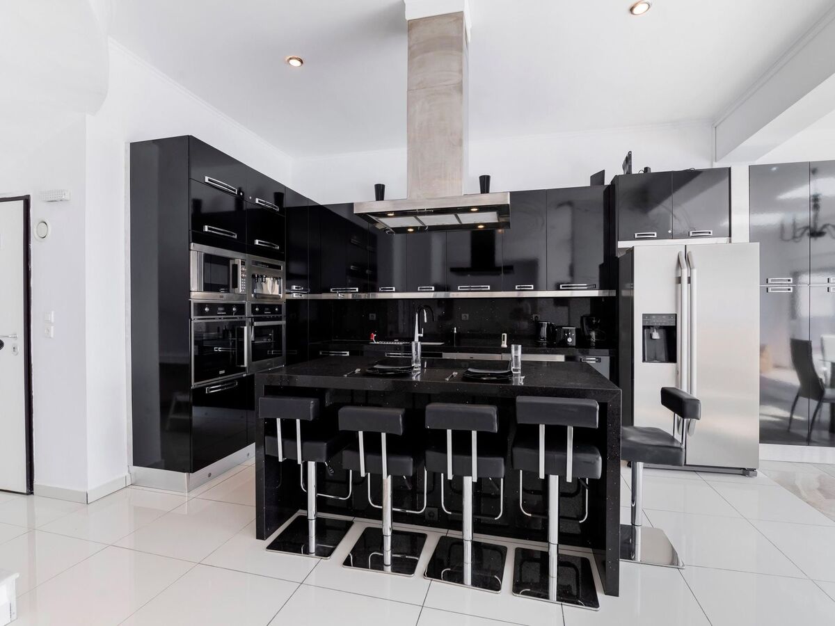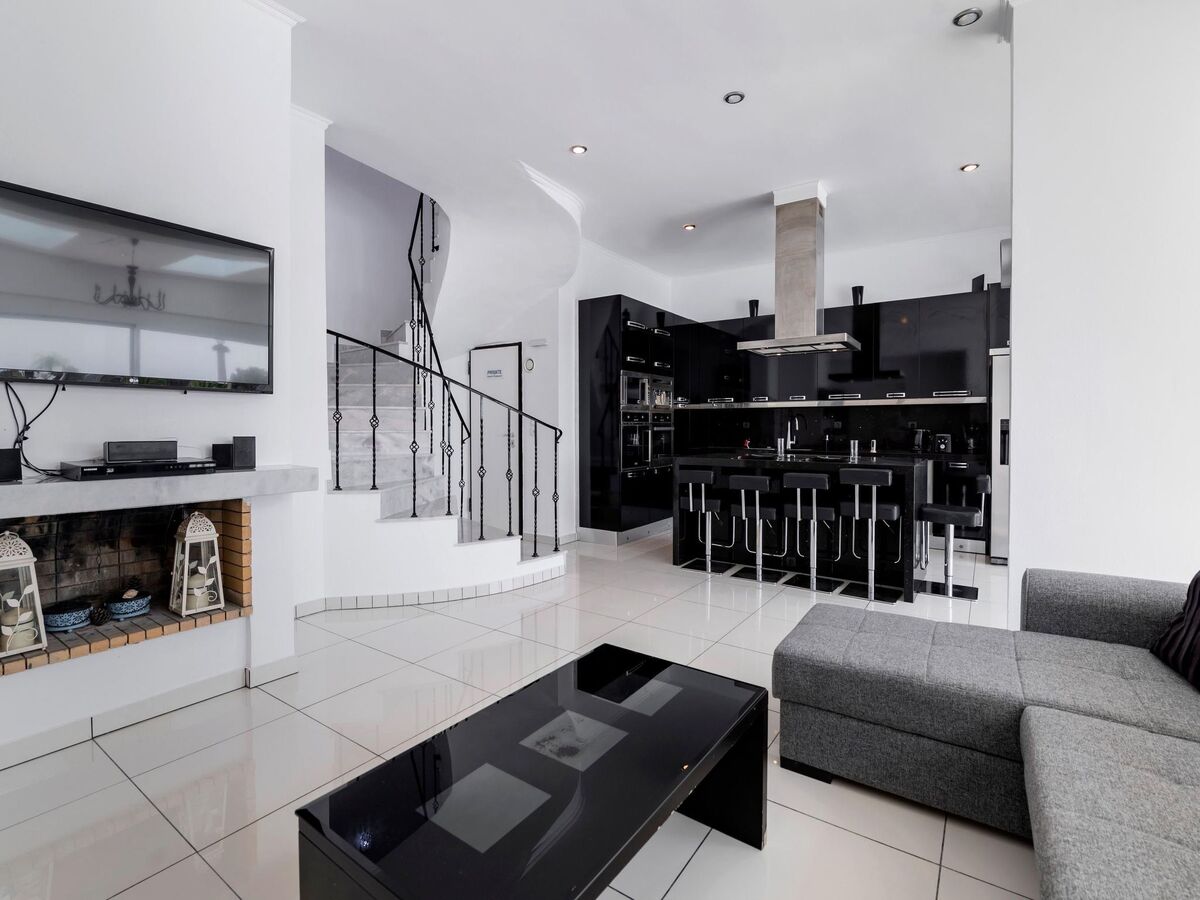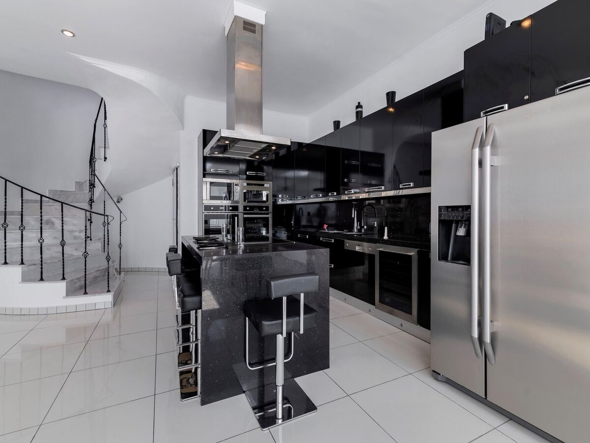 There’s an open plan fully equipped kitchen, designed in sophisticated tones, suitable for any meal preparation.
