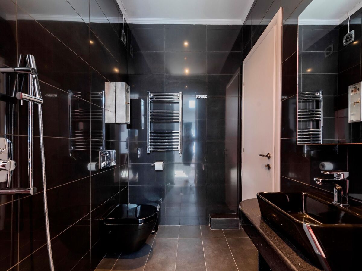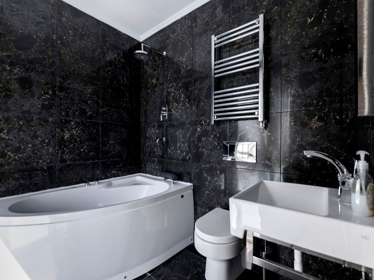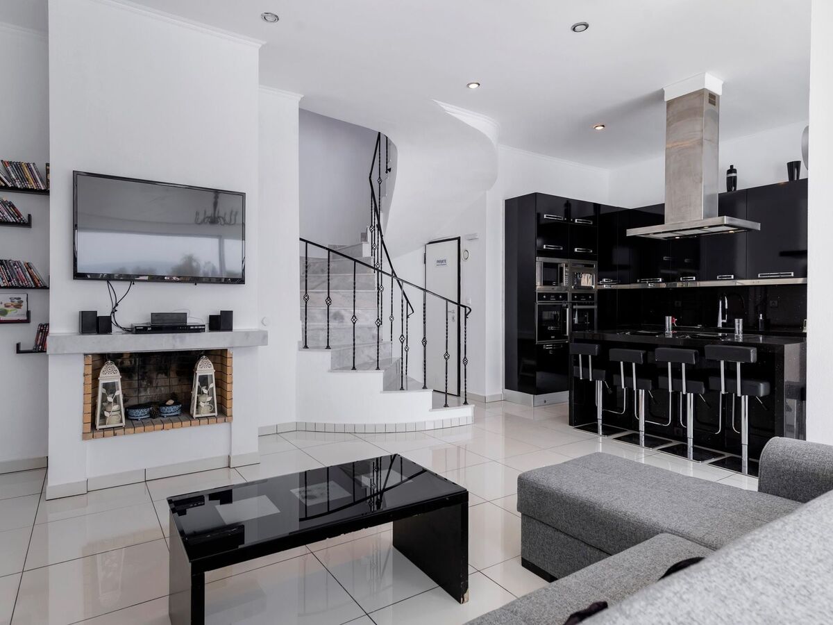 There’s an open plan fully equipped kitchen, designed in sophisticated tones, suitable for any meal preparation.