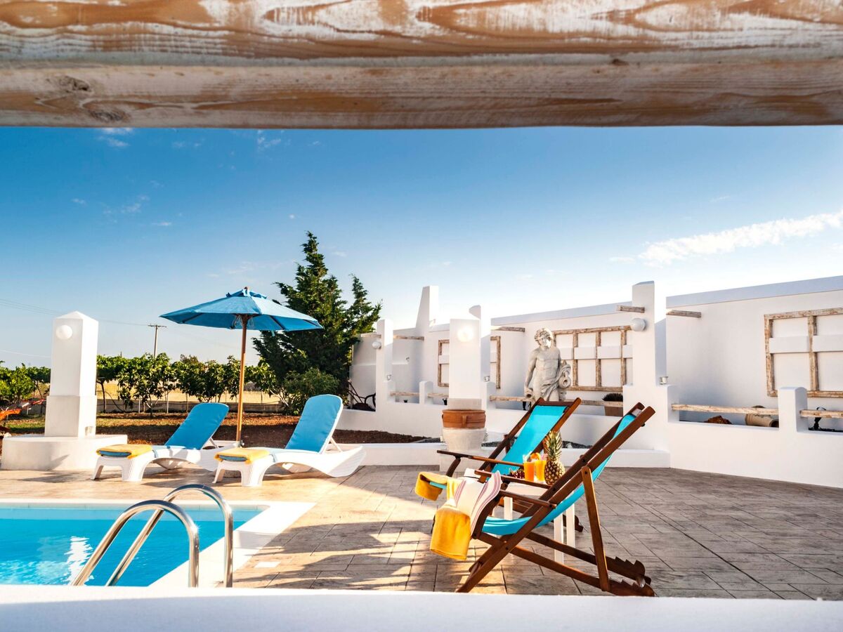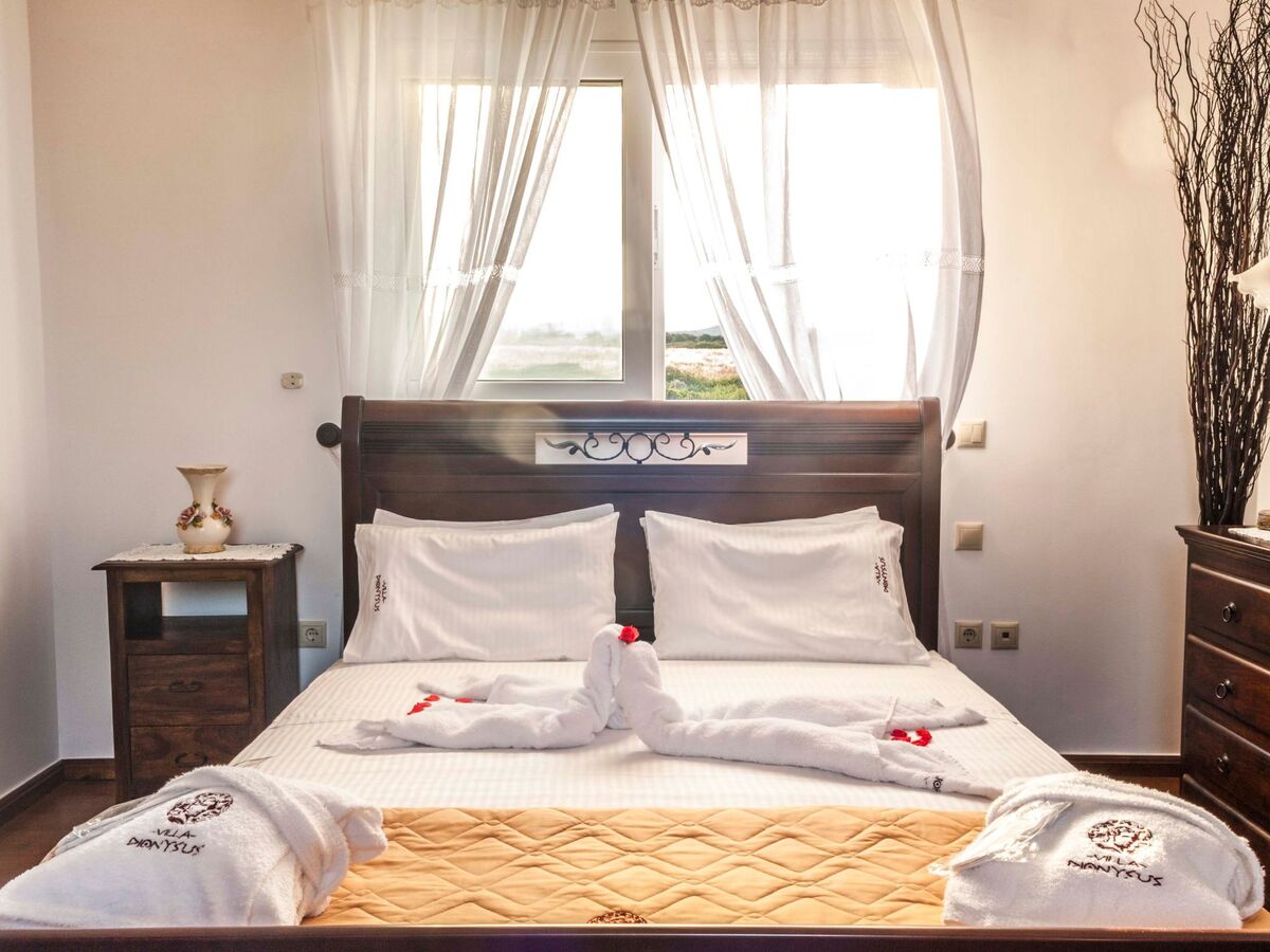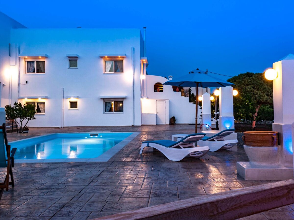 Dionysus Villa is surrounded by a beautiful garden with a private pool among the olive trees and vineyards that we produced our wine for our guests , BBQ installation and all outdoor amenities.