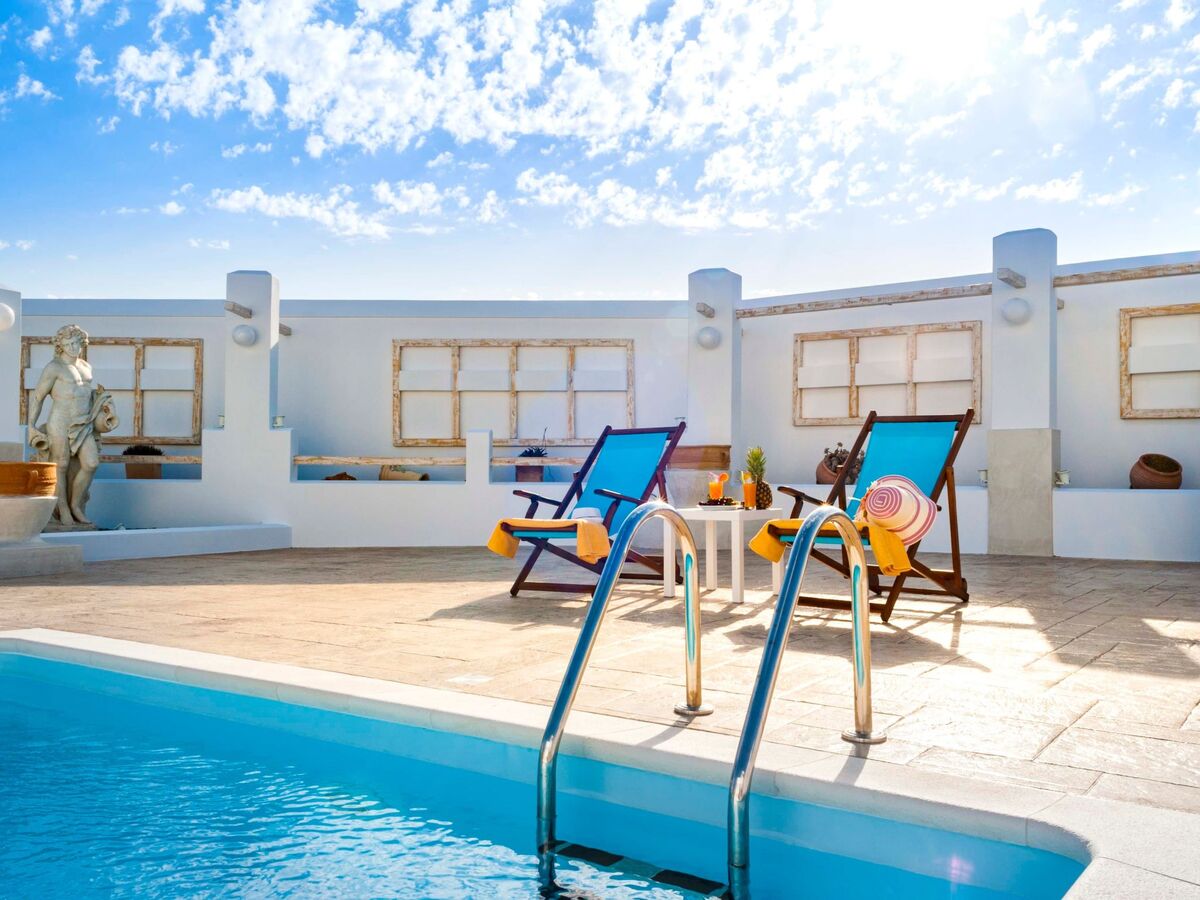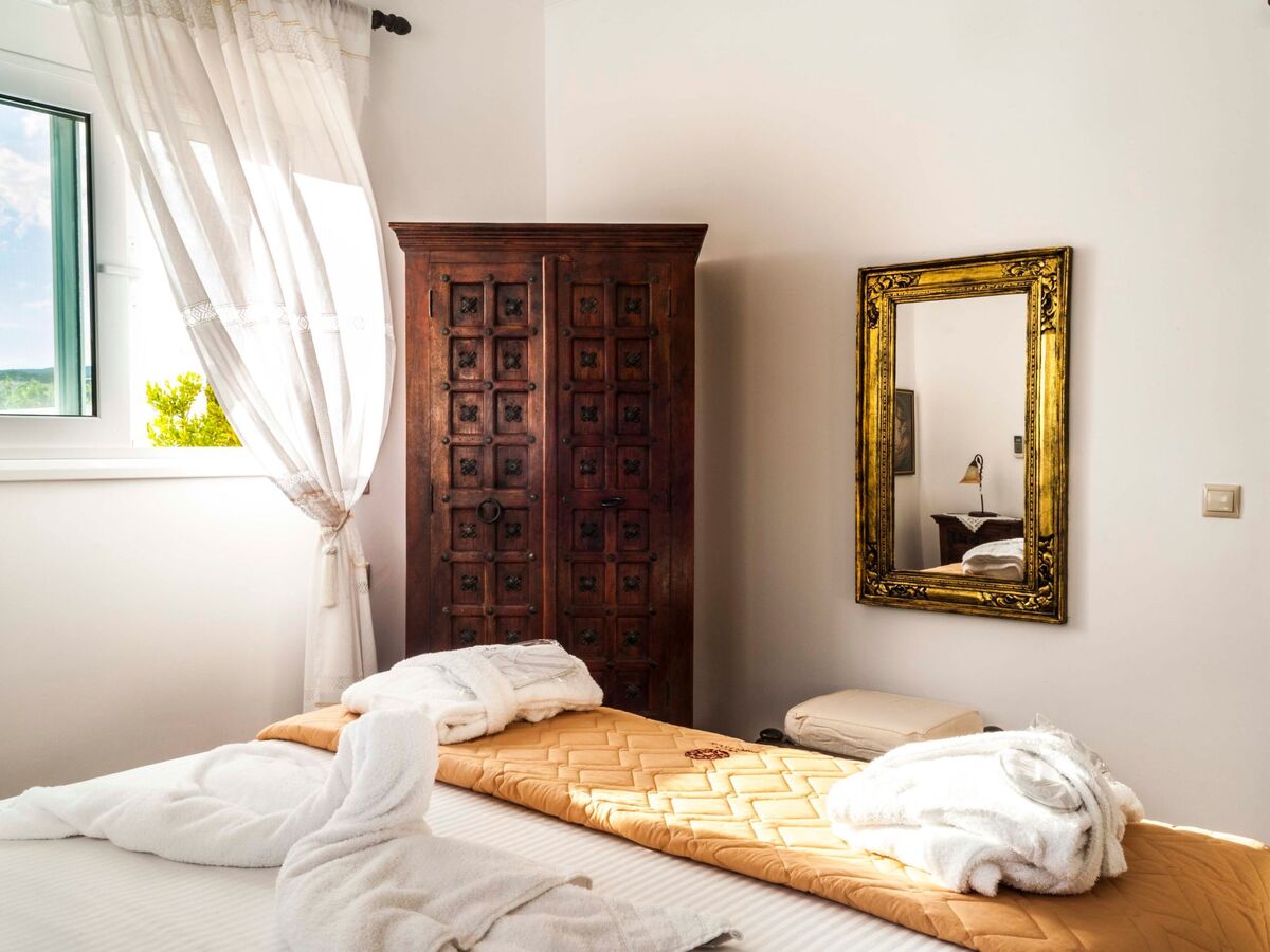 All the rooms are airconditioned, have a panoramic and uninterrupted view to the garden, the pool and the breathtaking landscape, which one can look at even from inside.