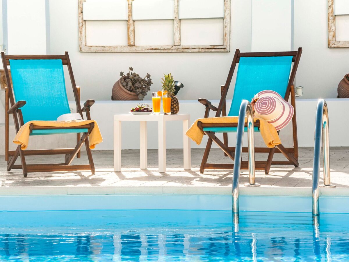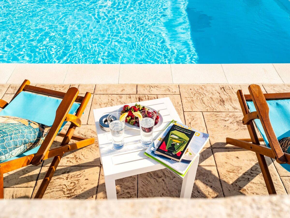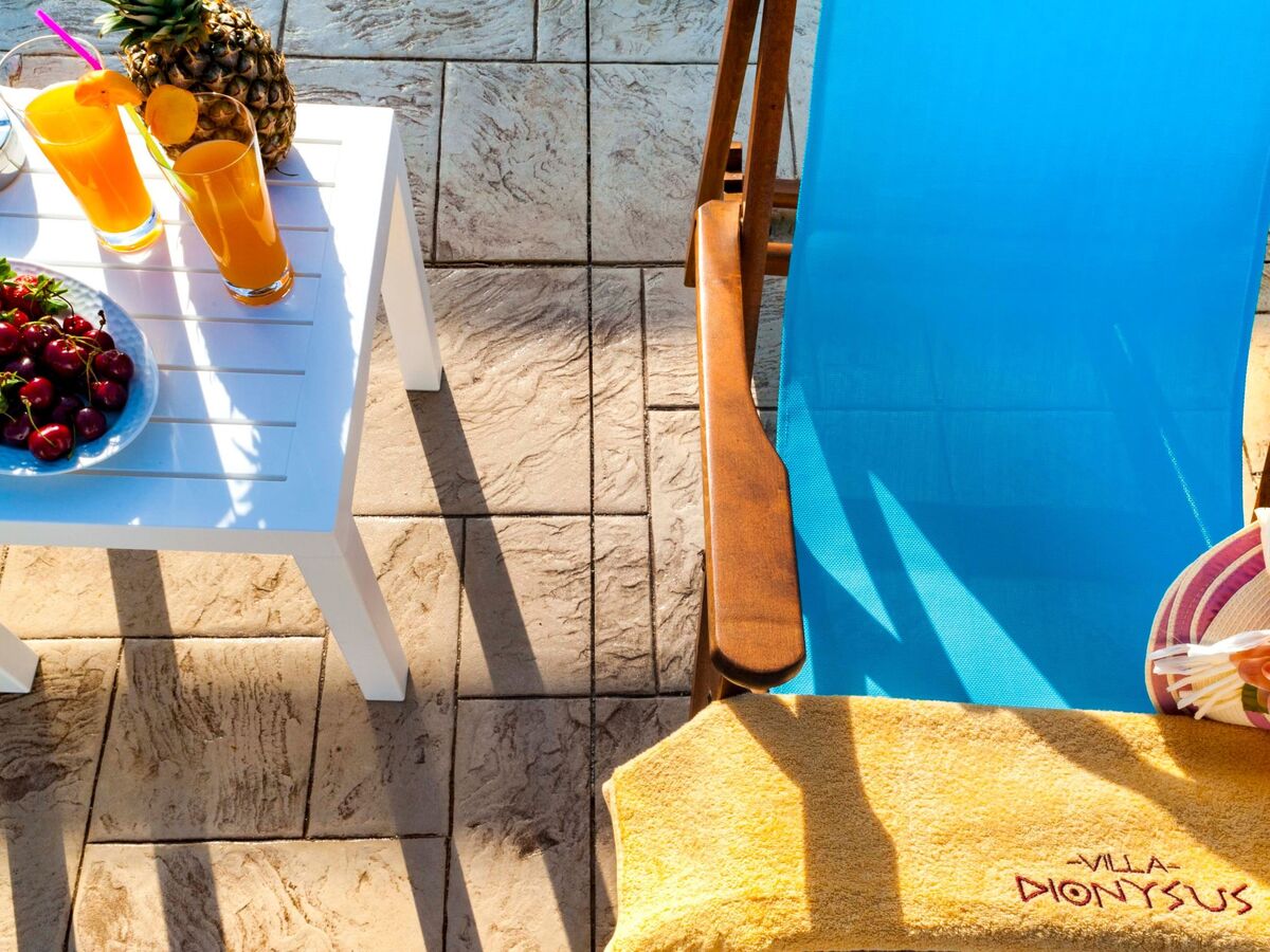 You can relax on the sunbeds with the comfortable cushions, the chairs, or on the lawn.