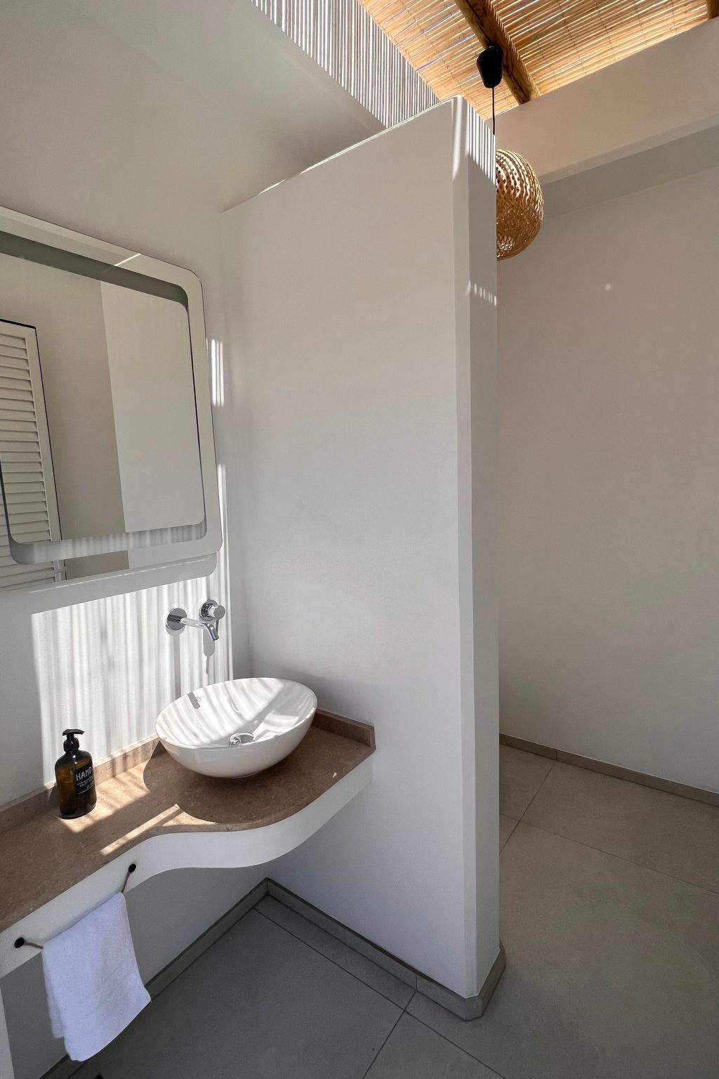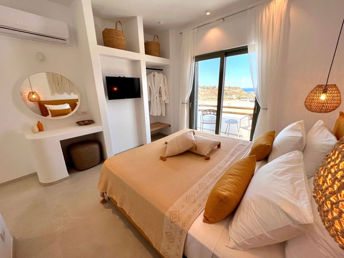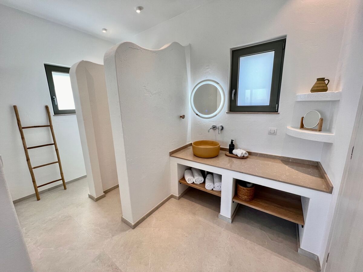 The first Suite offers a comfortable double bed with wonderful, panoramic views to the pool and the sea from the terrace, with its own en-suite bathroom with shower.