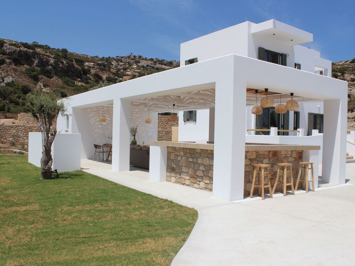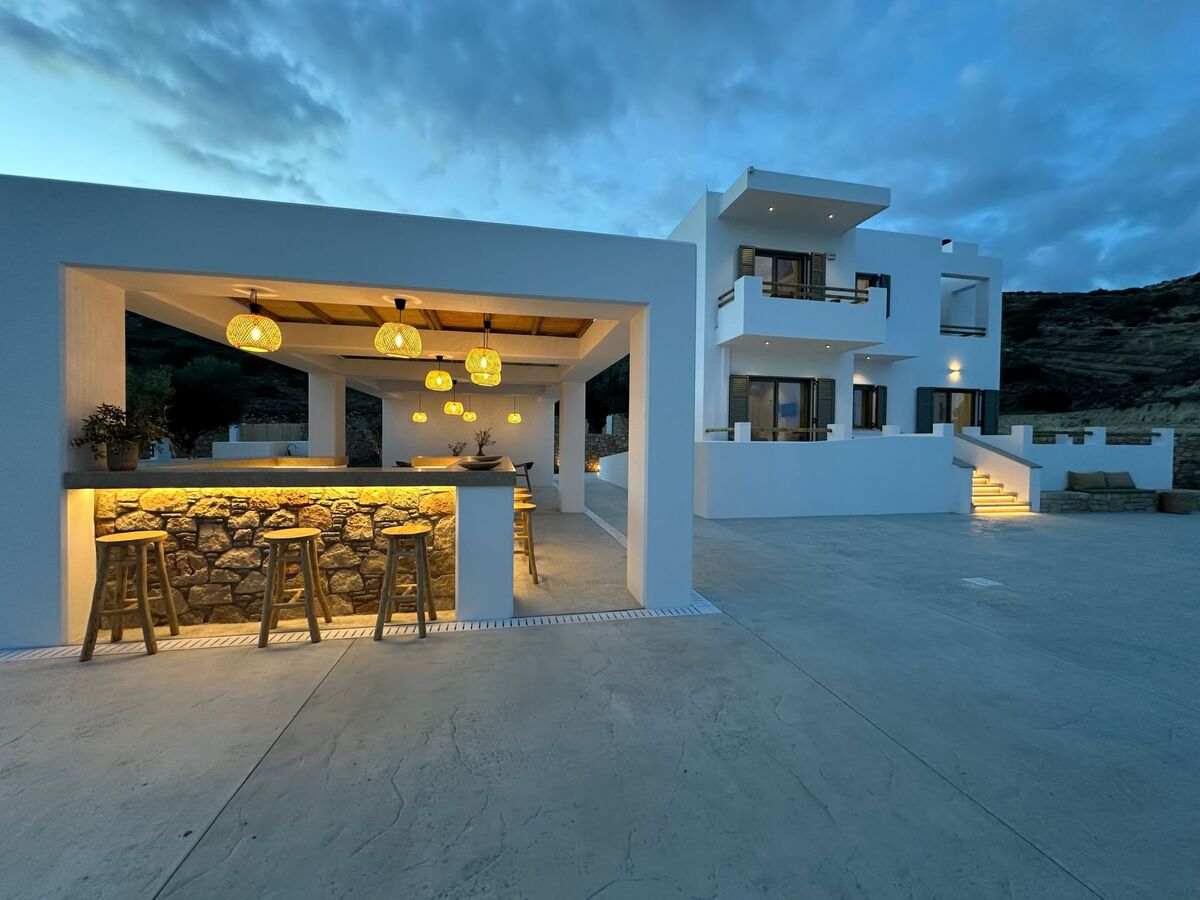 The villa combines panoramic sea views, a big private heated pool, a spacious jacuzzi for up to 10 guests, wide terraces with breathtaking views, a modern outdoor lounge area with BBQ and Bar facilities, large private gardens and private parking, all in one place.