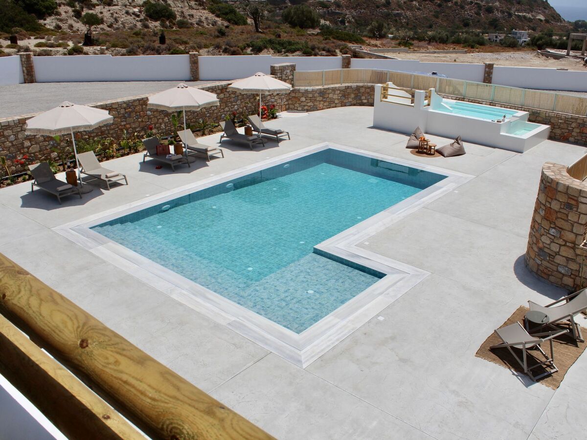 Villa Elaia offers a big private, heated pool along with a wide Jacuzzi facility, cozy sunbeds and umbrellas for all-day relaxing by the sunny pool.