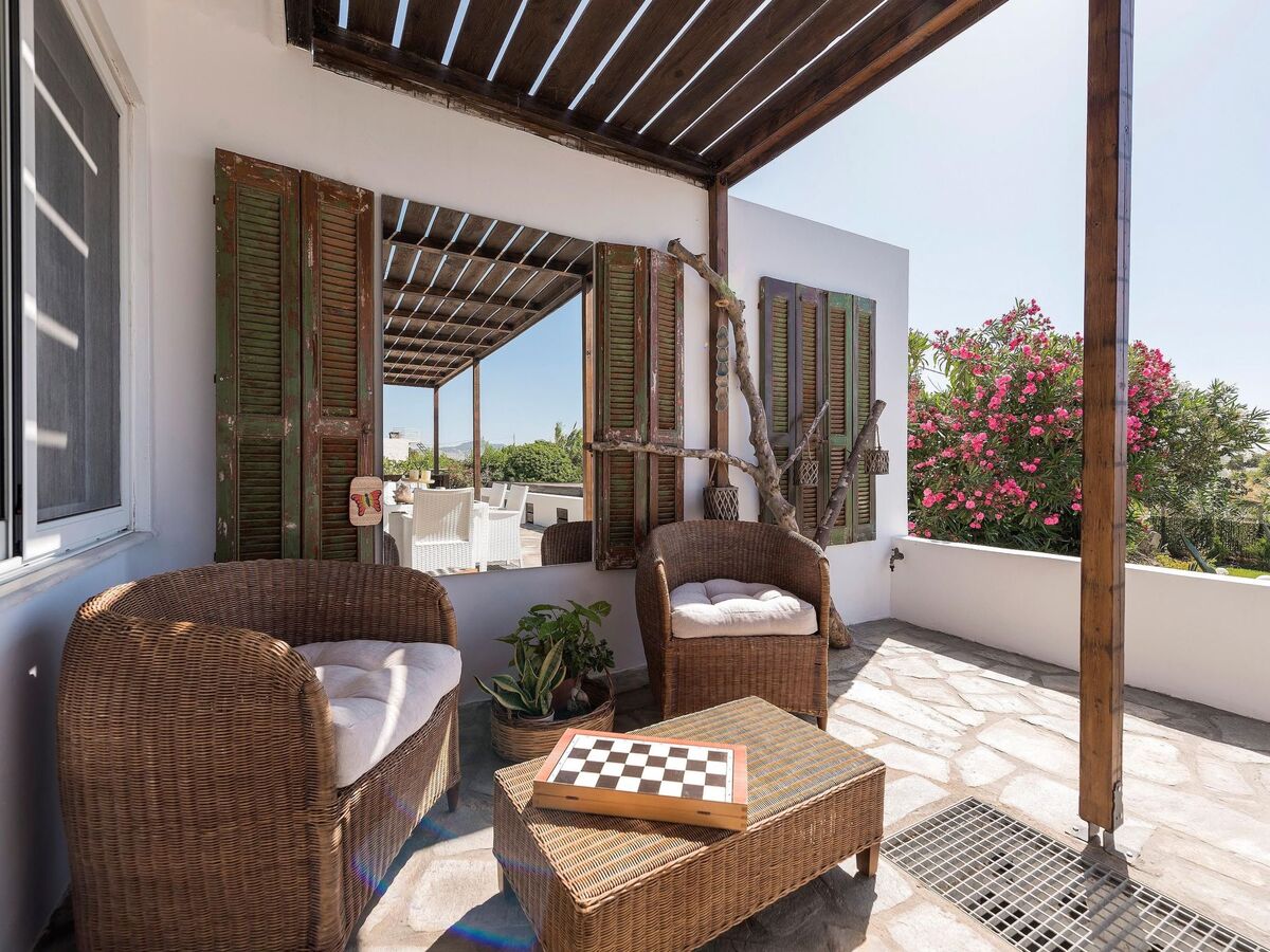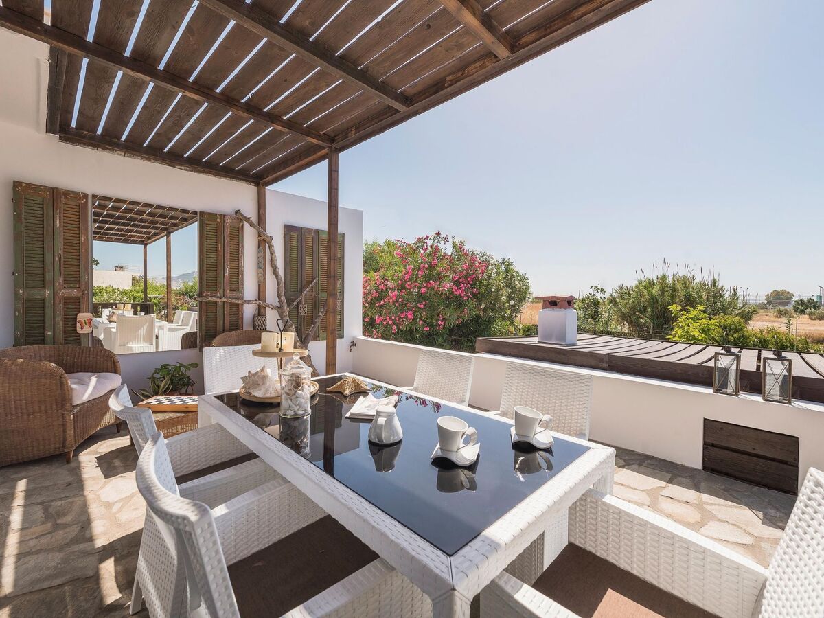 The villa is also close to the best beach of the island, Tsampika beach, which stretches over 1 km and combines soft, golden sand with crystal clear, shallow waters.