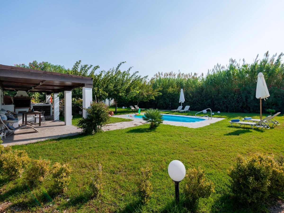 The villa is surrounded by well-tended gardens with a private swimming pool equipped with sunbeds that create the perfect setting to relax under the golden rays of the sun and work on your tan.