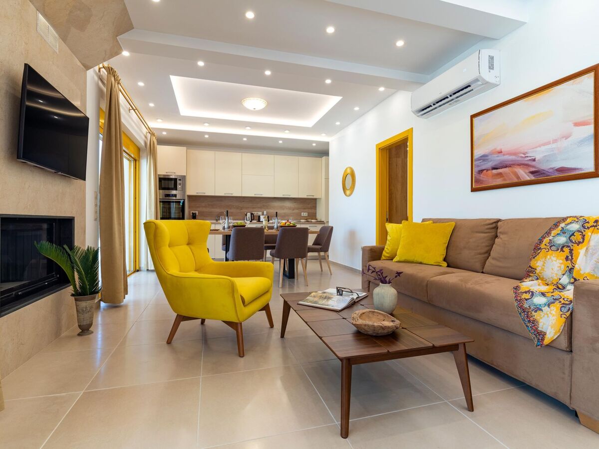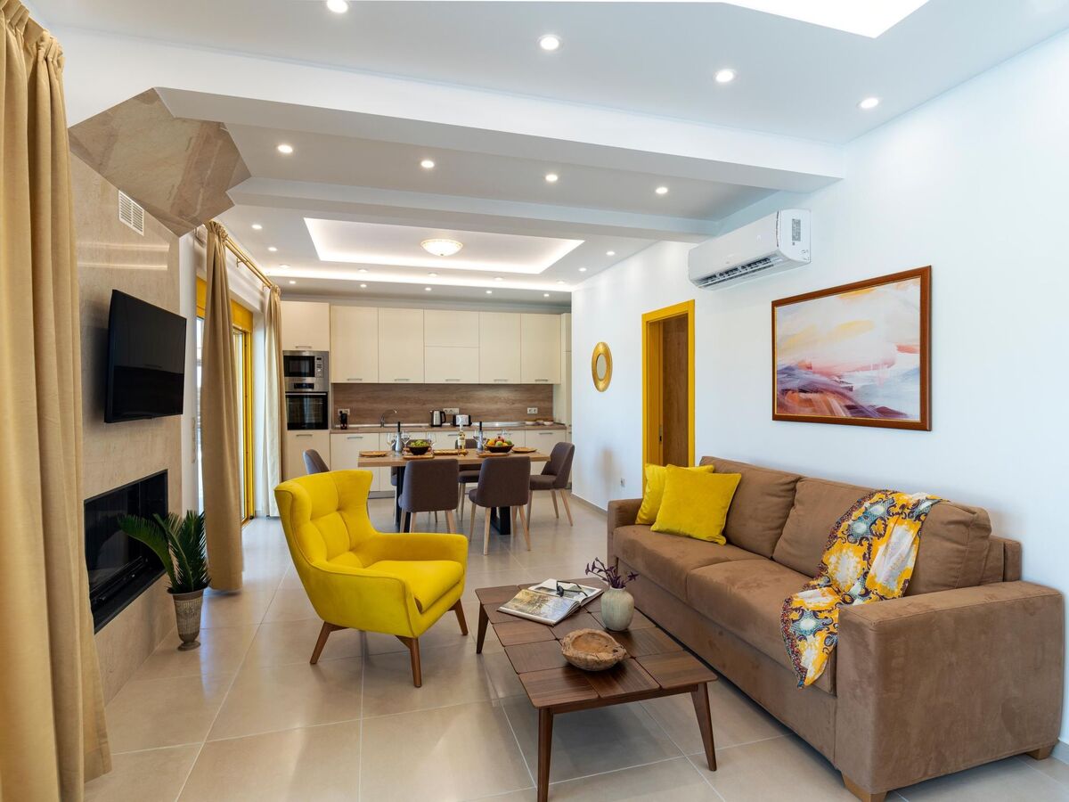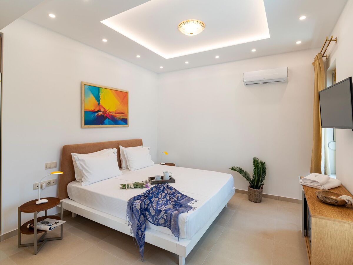 Outdoors, there’s a magnificent private swimming pool and sitting areas to relax under the Aegean sun.
