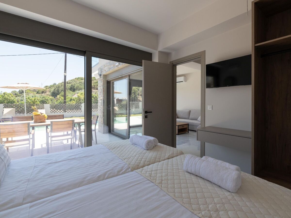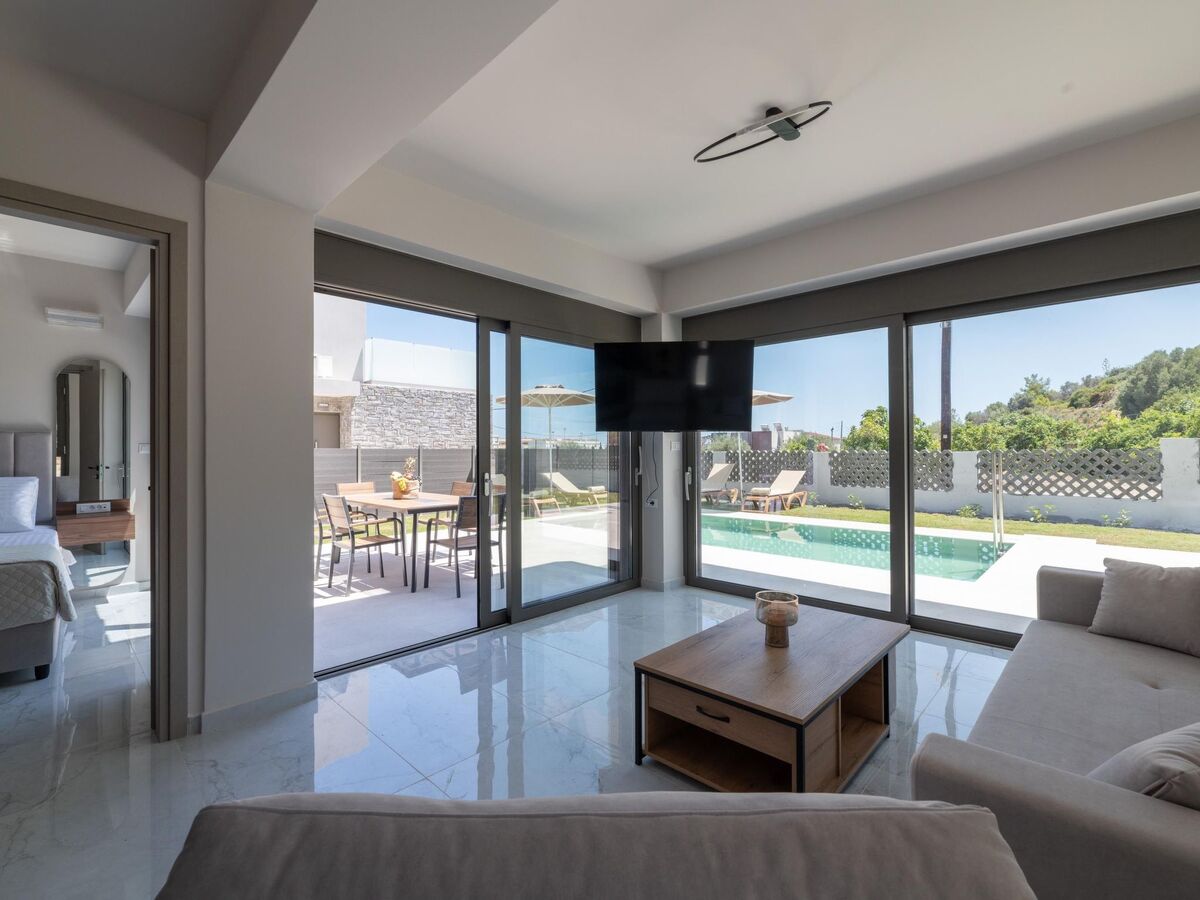 The city center of Rhodes is approximately 35 km away, while the famous village of Lindos is about 25 km from the villas, both easily accessible for day trips.
