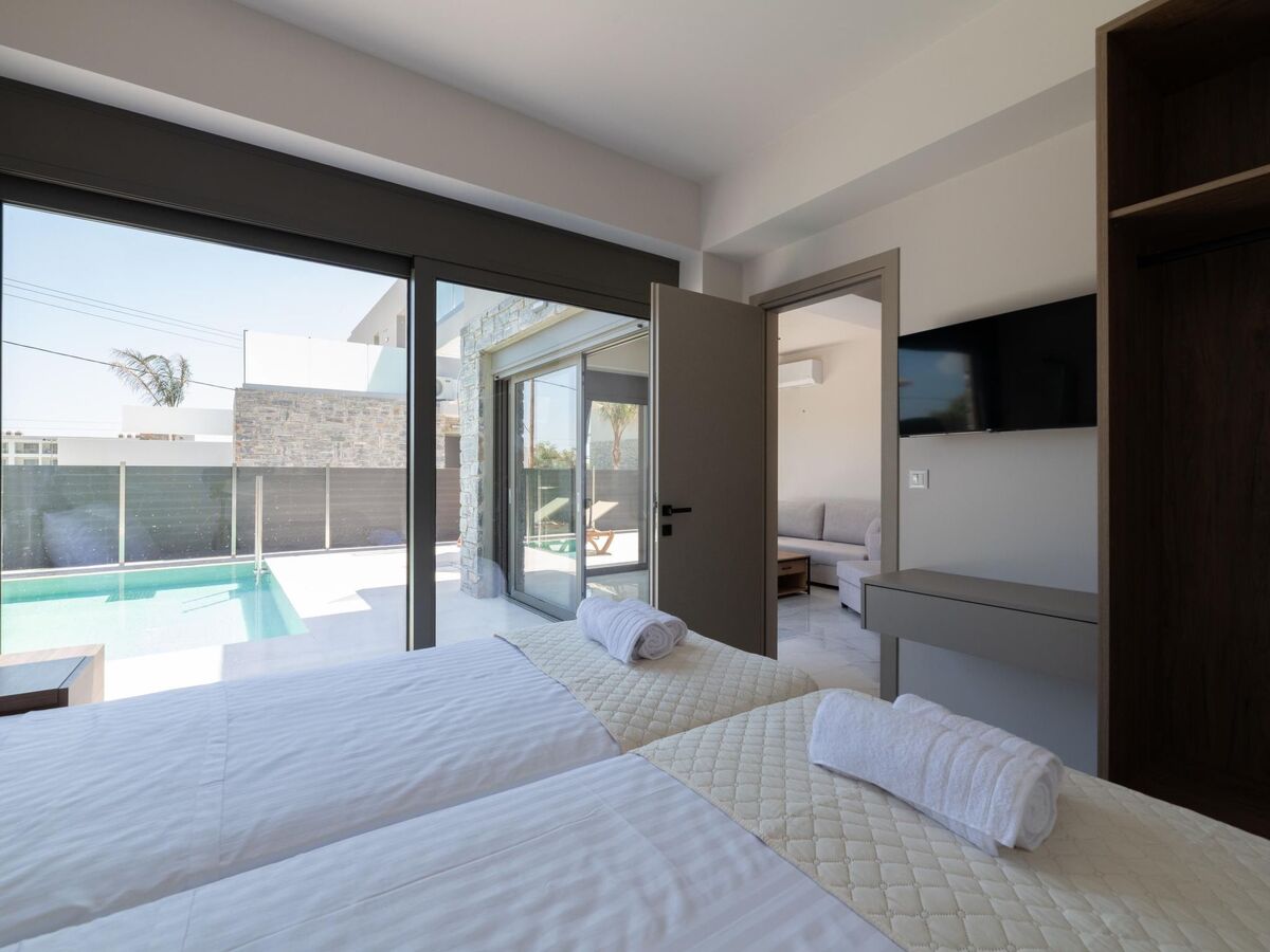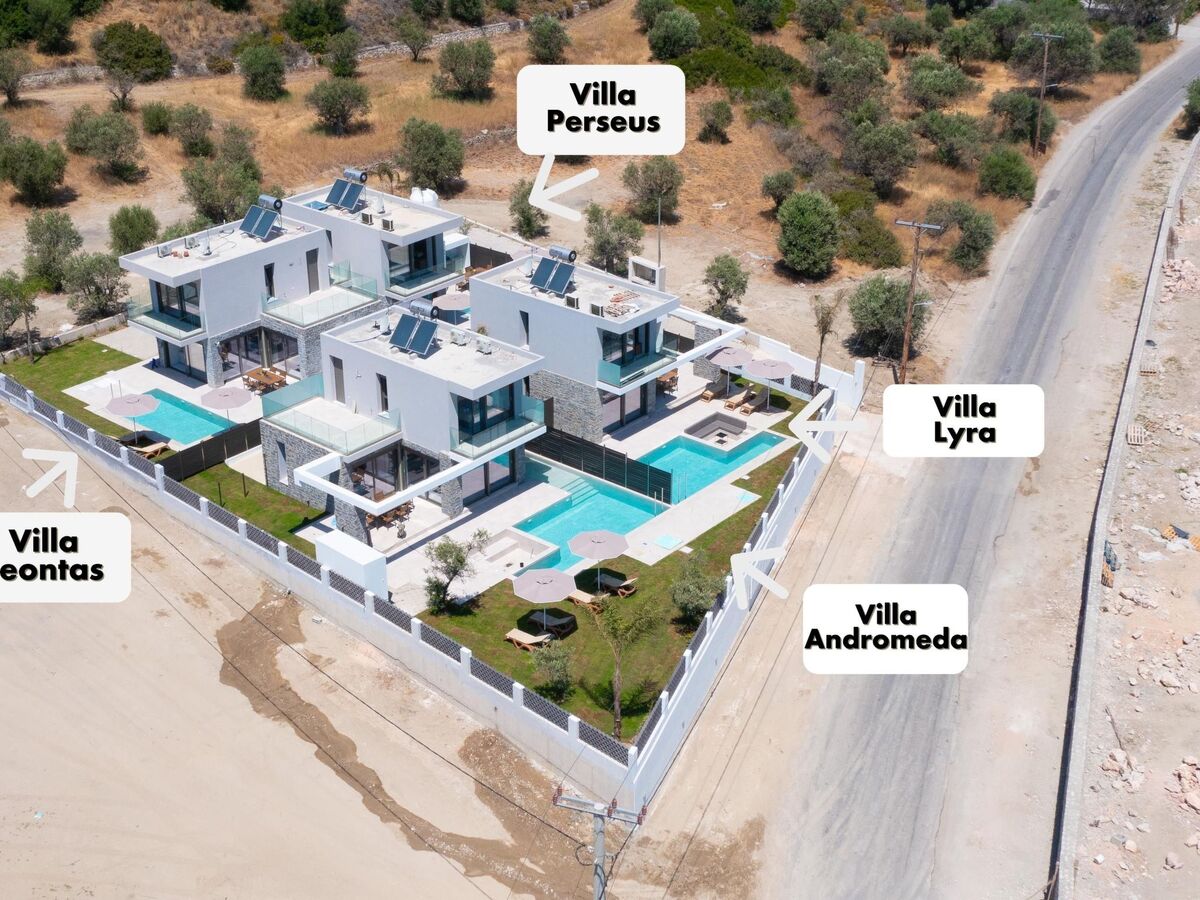 The city center of Rhodes is approximately 35 km away, while the famous village of Lindos is about 25 km from the villas, both easily accessible for day trips.