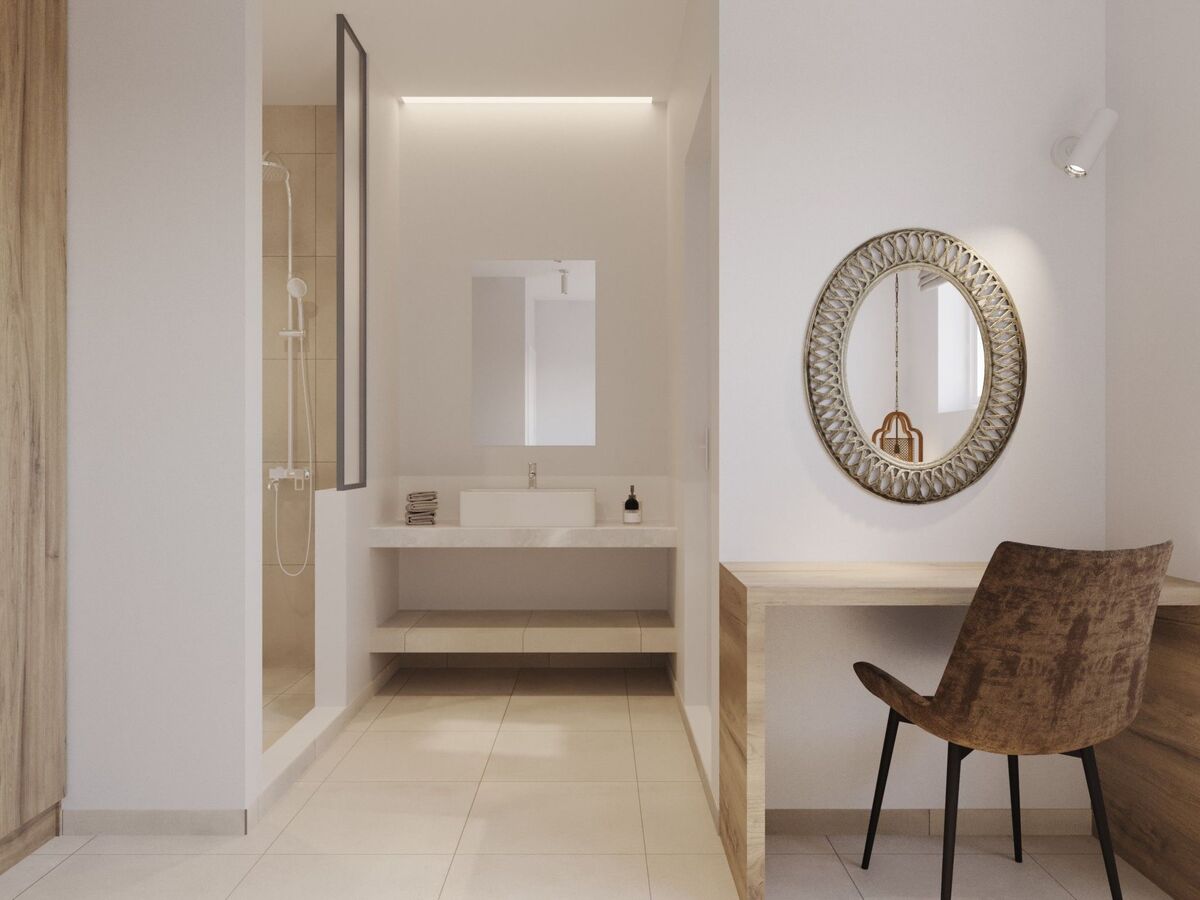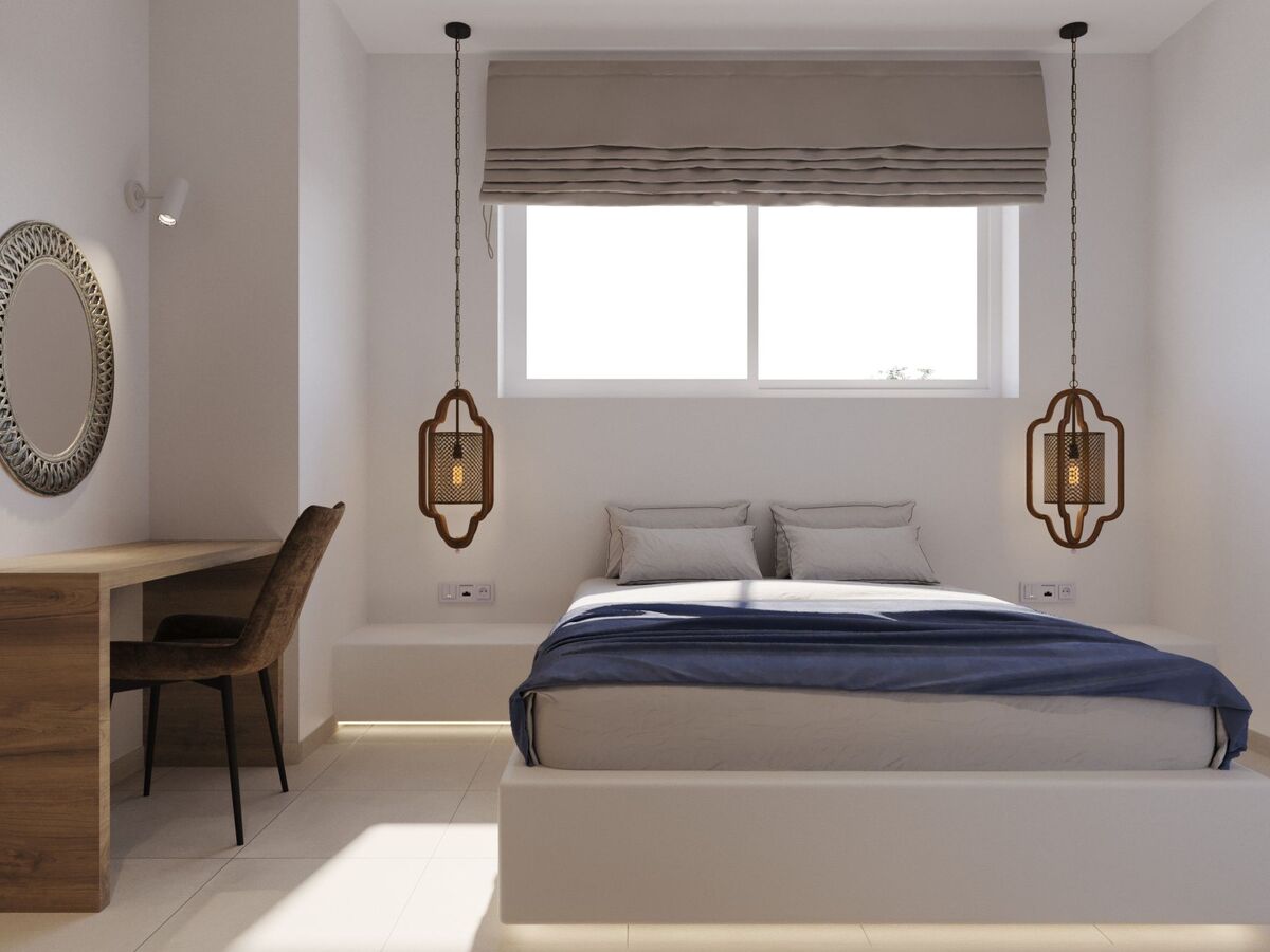 As the ceilings are very high, a floor with a second bedroom with a double bed was created, which was complemented by en suite shower and wc