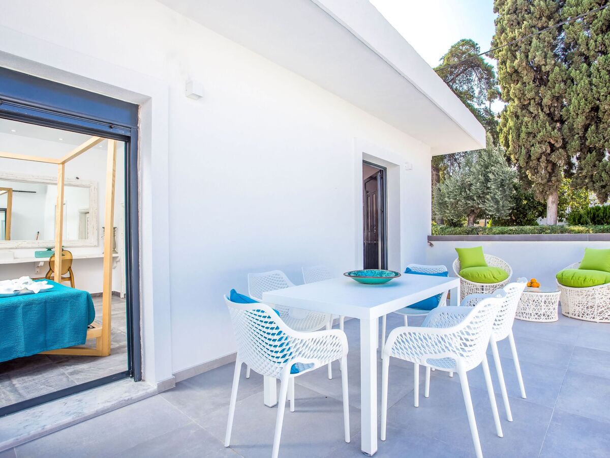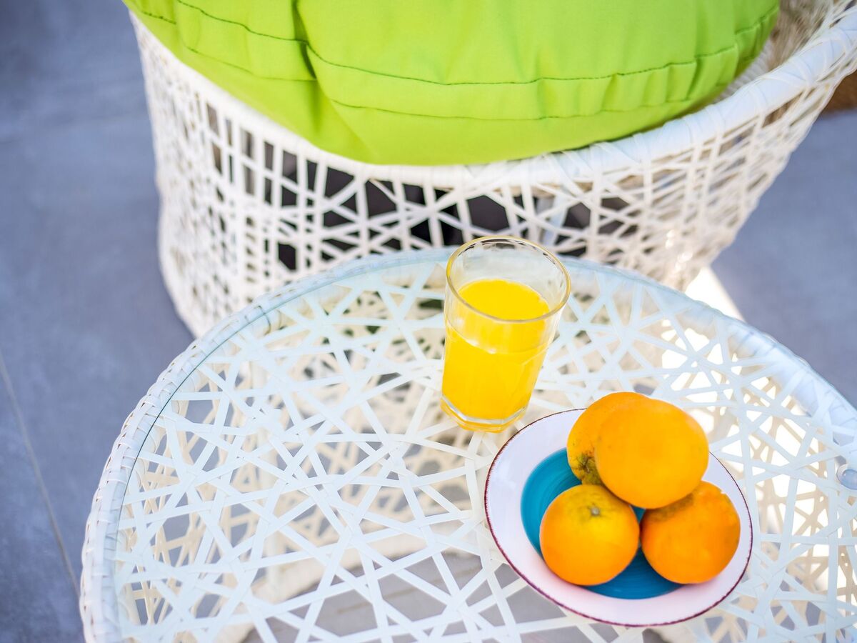 A very comfortable private terrace which is surrounded by a wall and private entrance, has a large outdoor umbrella and outdoor furniture for guests to enjoy the sun during the summer.