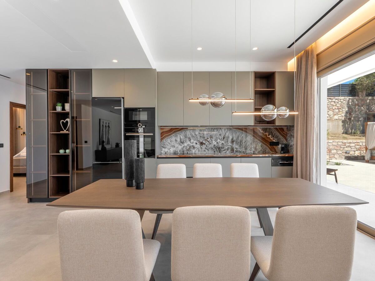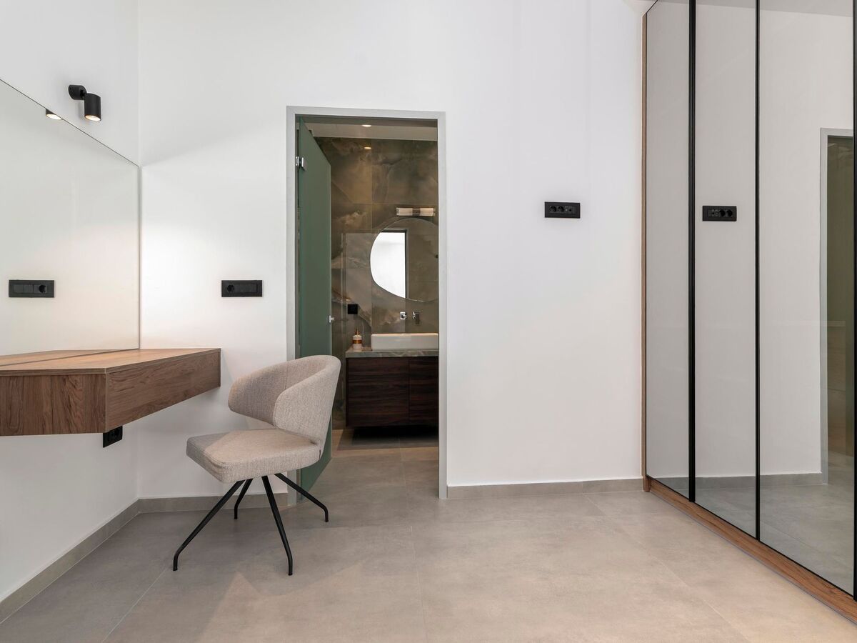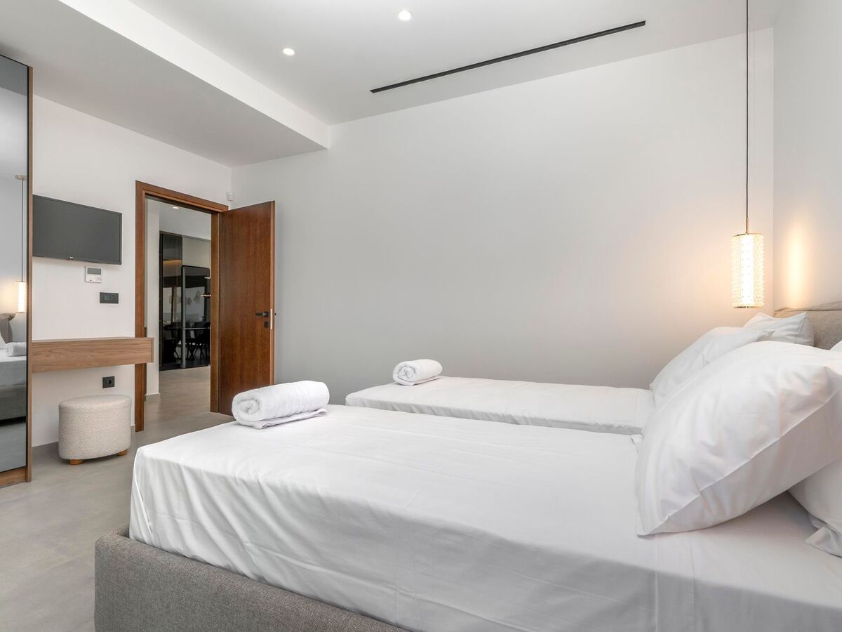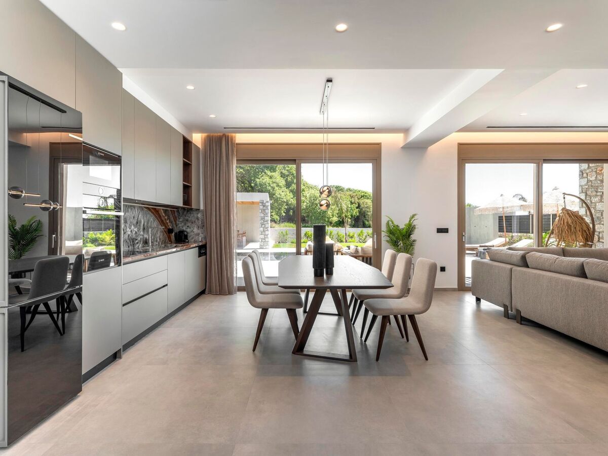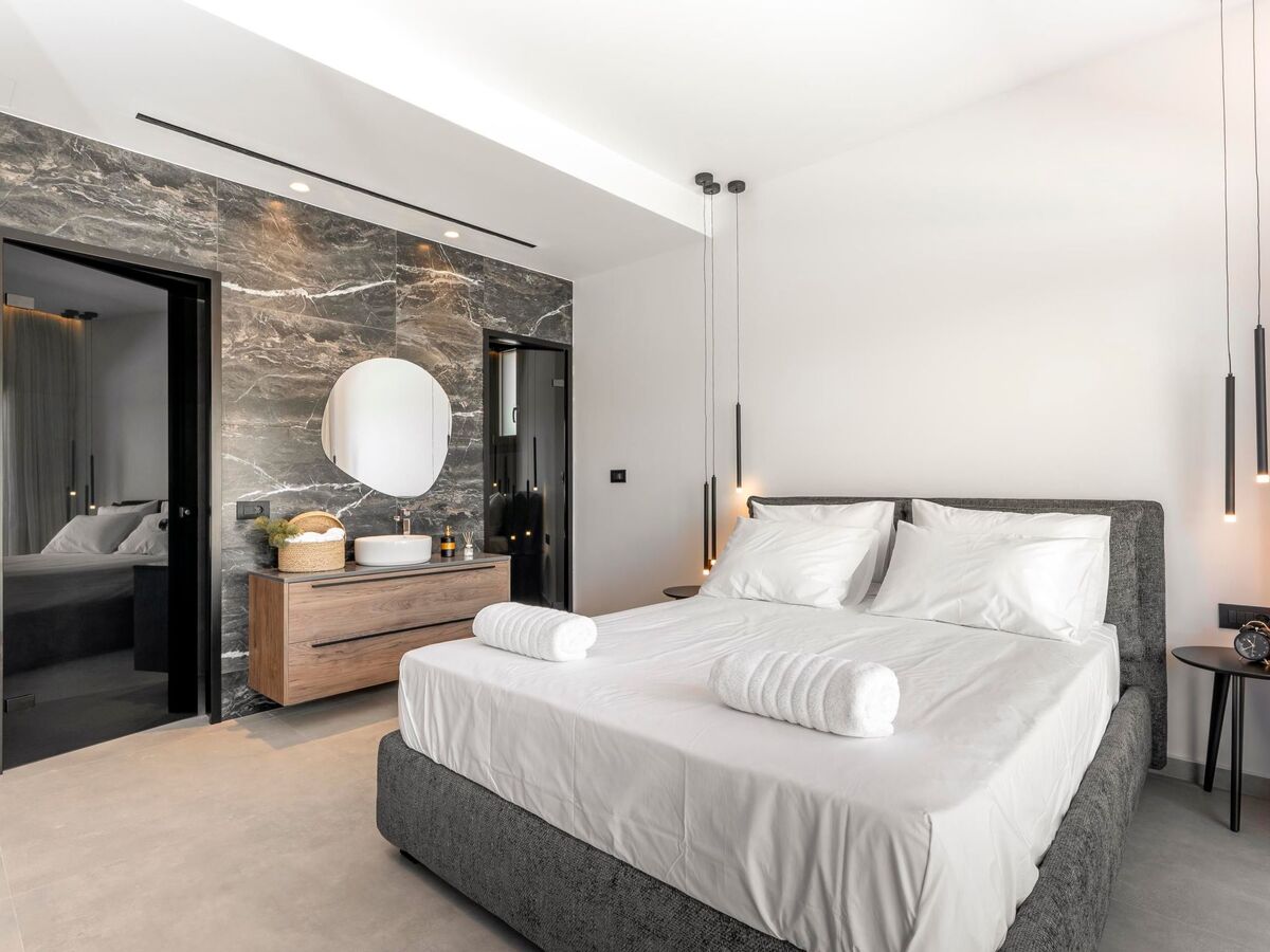 This splendid villa boasts three air-conditioned bedrooms, two with cozy double beds and one with two single beds, ensuring a comfortable night's rest for everyone.