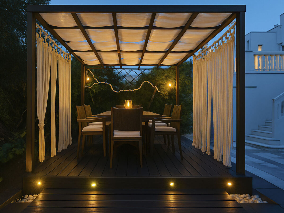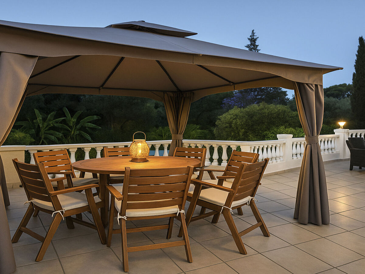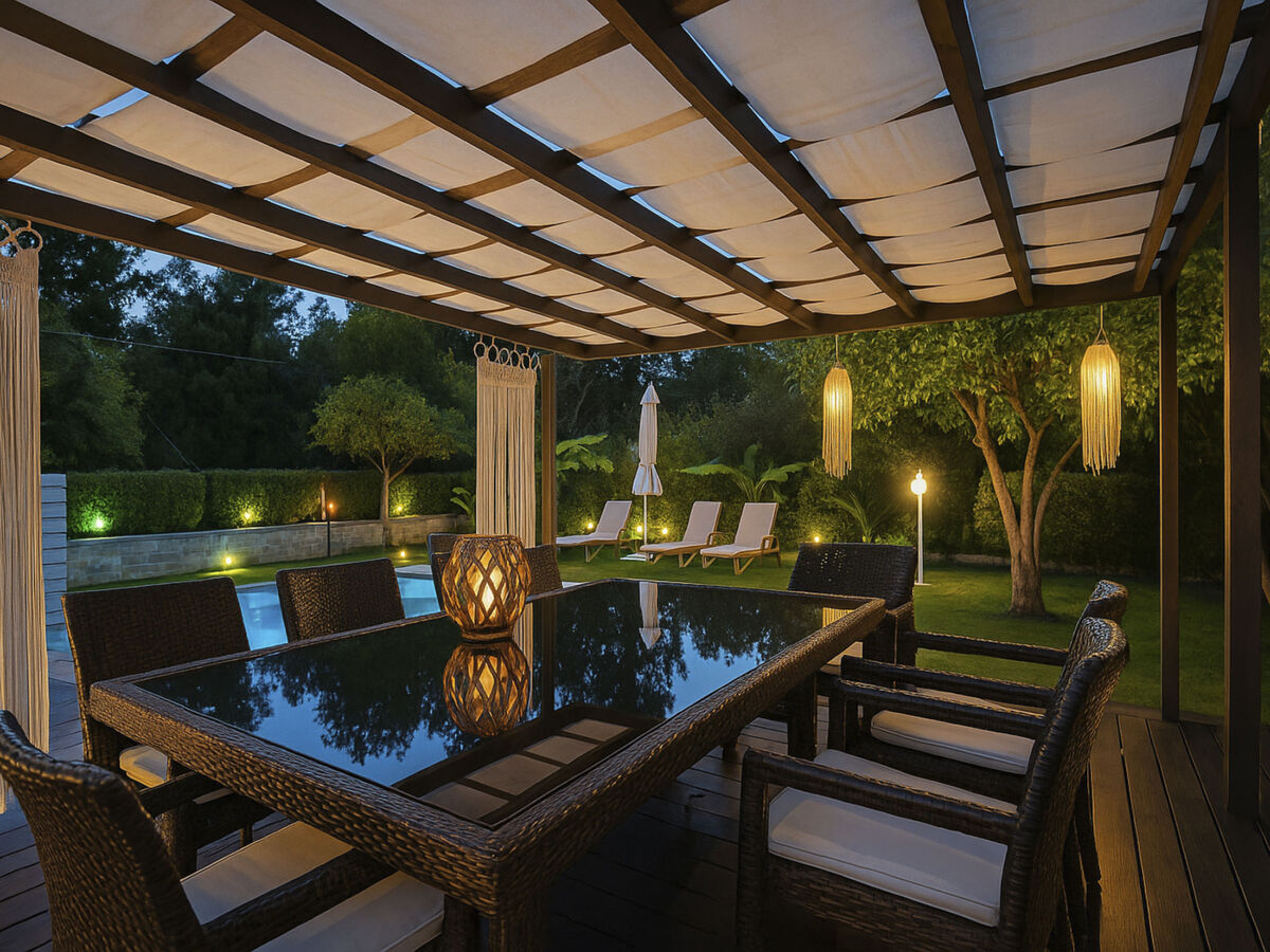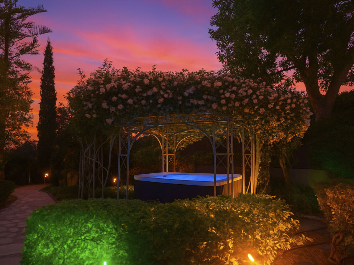Le soir, détendez-vous avec un verre de vin, une boisson ou une bière dans le jardin magnifiquement éclairé, en écoutant les sons paisibles de la fontaine ou de l'eau de la piscine, et profitez d'une atmosphère et d'une expérience vraiment relaxantes.