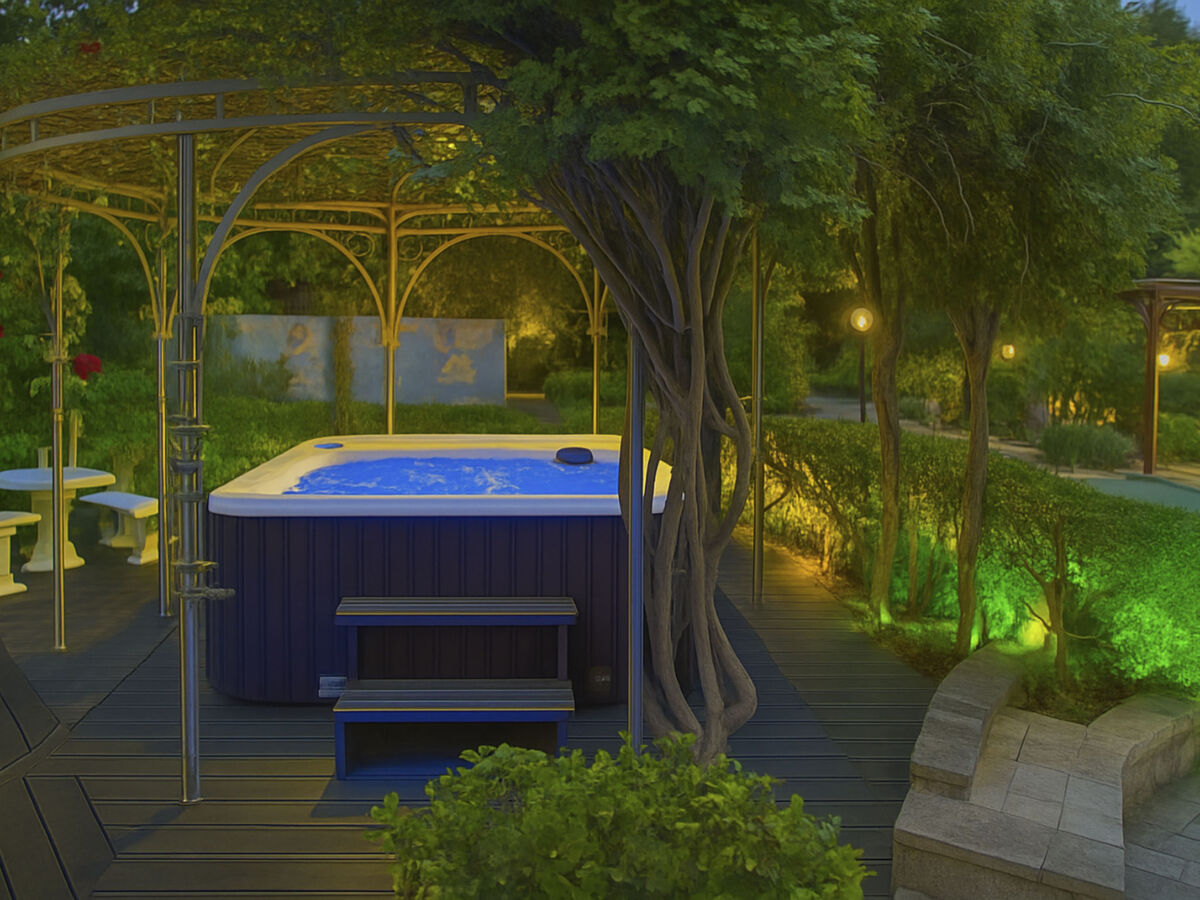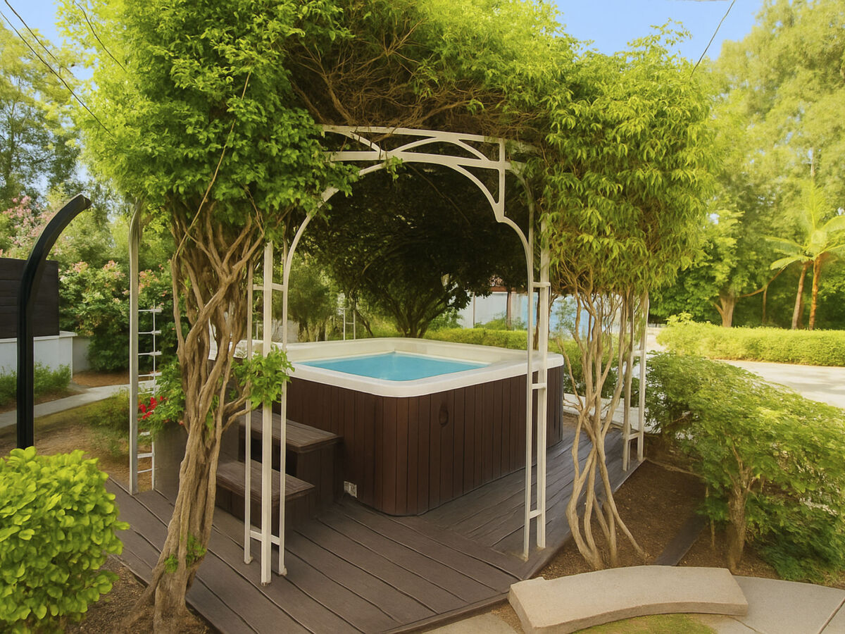 Dans le jardin, parmi les fleurs éclatantes, vous trouverez également un jacuzzi extérieur pour 5-6 personnes, idéal pour un bain romantique ou thérapeutique agrémenté d'eau chaude et d'huiles essentielles.