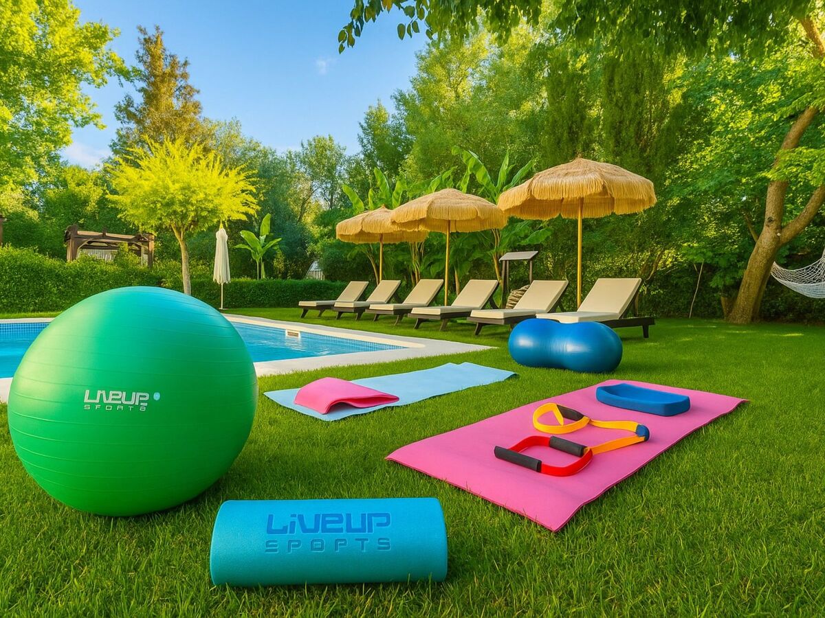 You can sunbathe on stylish loungers with comfortable cushions or relax on the lawn under the shade of the trees.