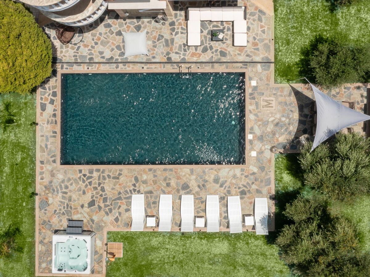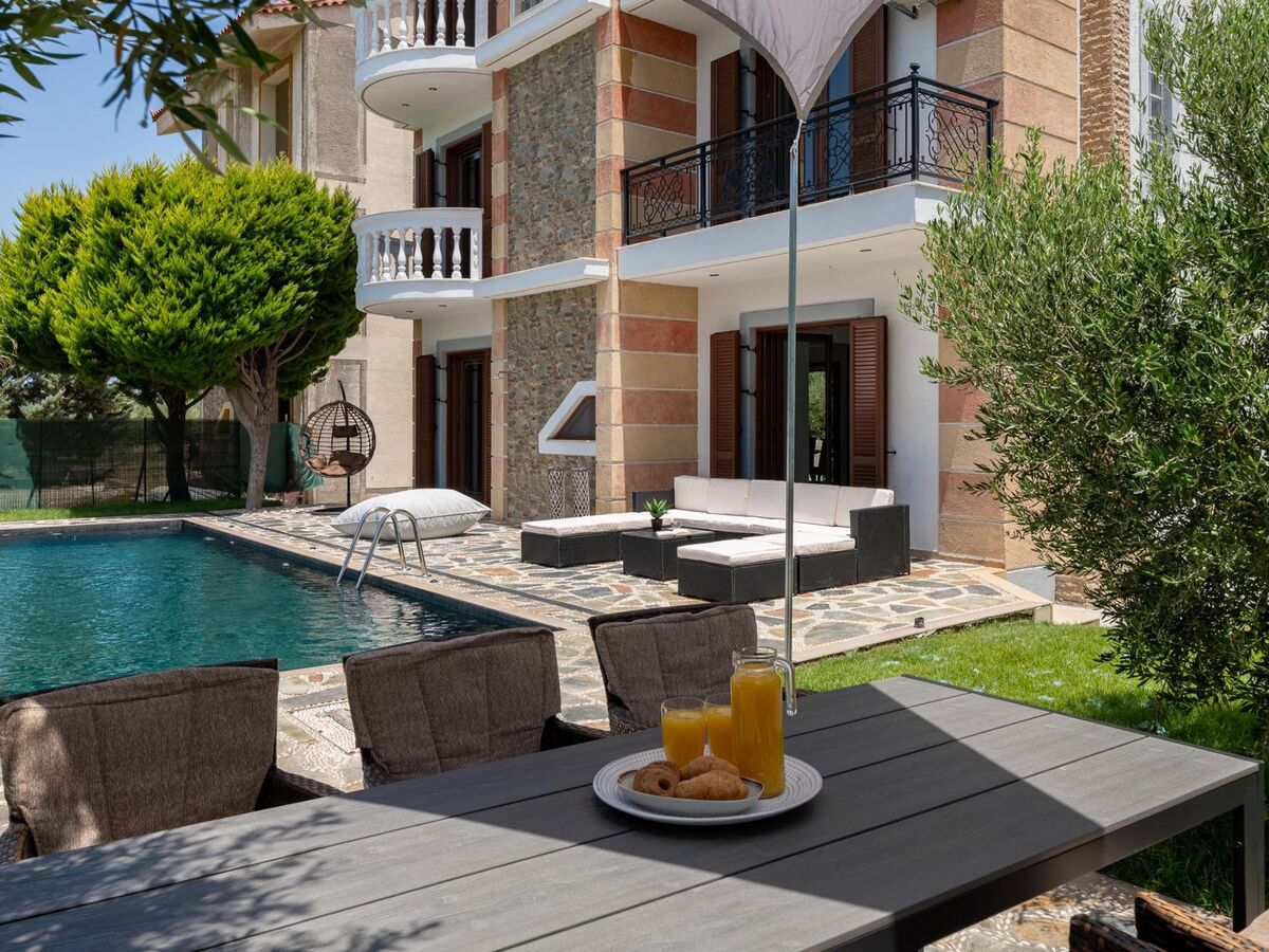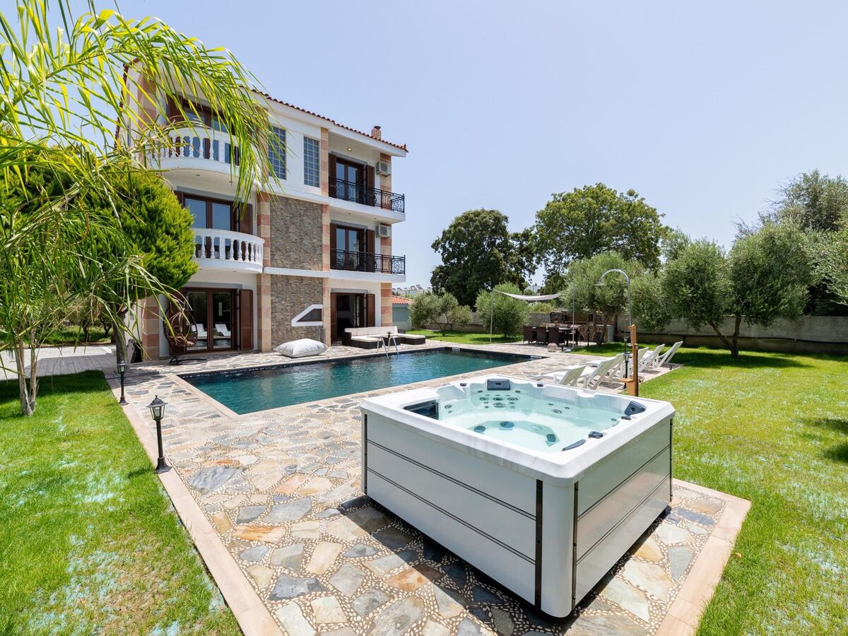 Outdoors, there’s the wonderful private swimming pool and a heated jacuzzi with sunbeds where you can relax and work on your tan under the rays of the Aegean Sun.