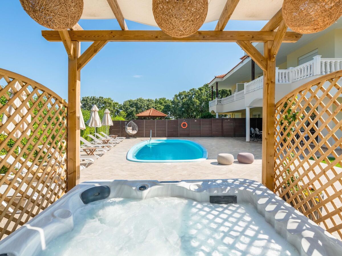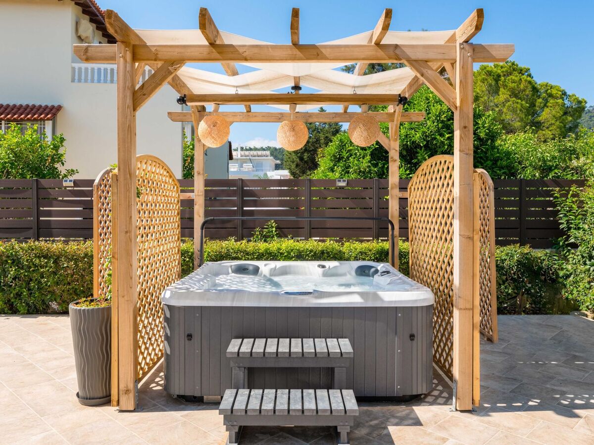 Outdoors, there’s the wonderful private swimming pool and a heated jacuzzi with sunbeds where you can relax and work on your tan under the rays of the Aegean Sun.