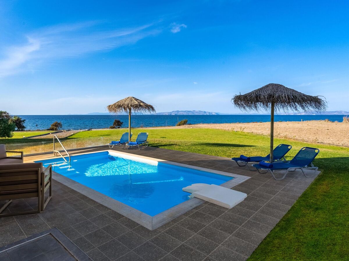 Outdoors, there’s an incredible private swimming pool with its sunbeds where you can relax under the Aegean sun.