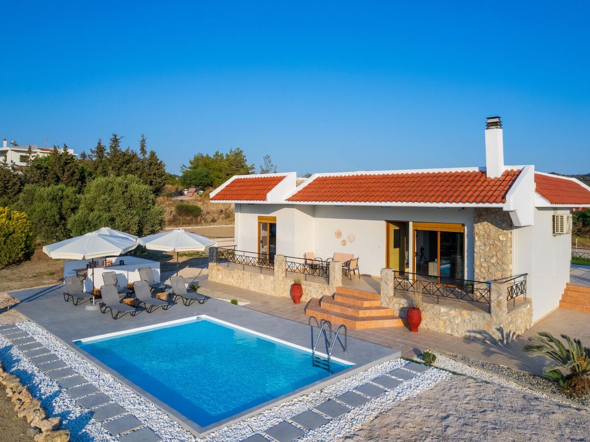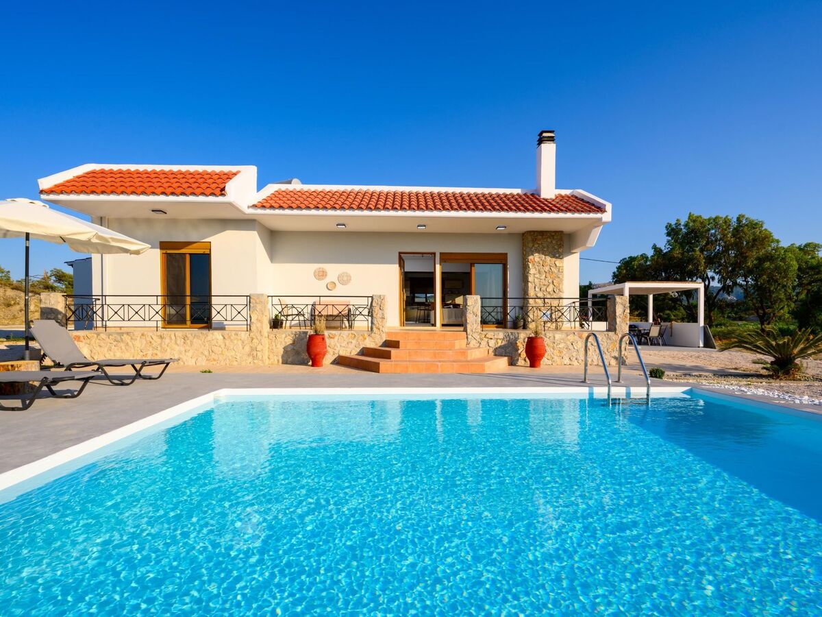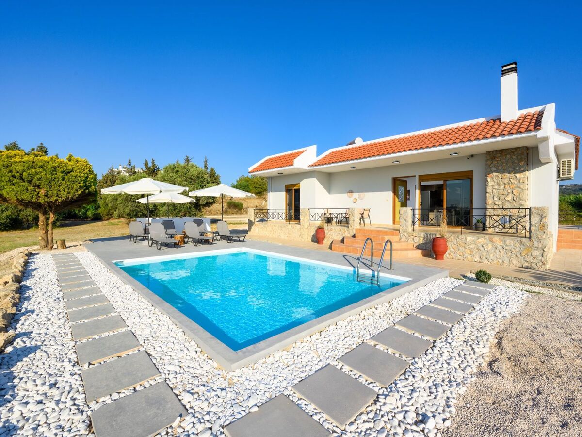 This unique villa is set in the calm and serene area of Pastida on a high point surrounded by hills; with views of olive groves, Filerimos, and beyond.
