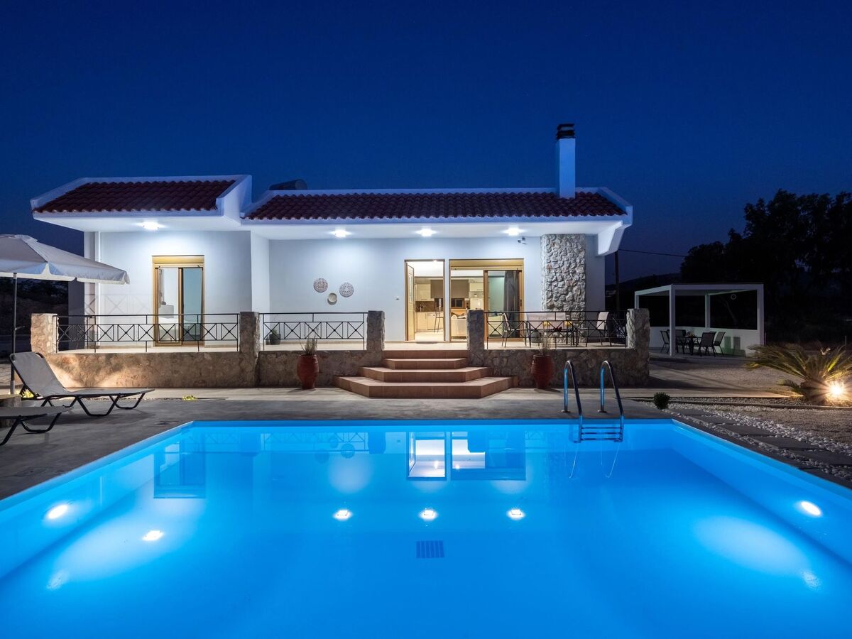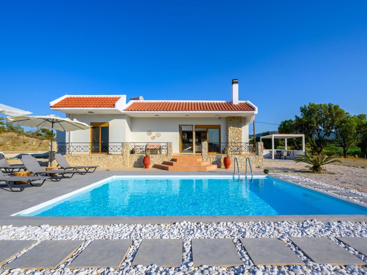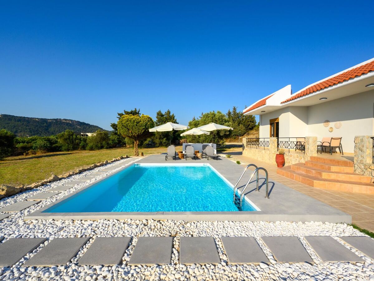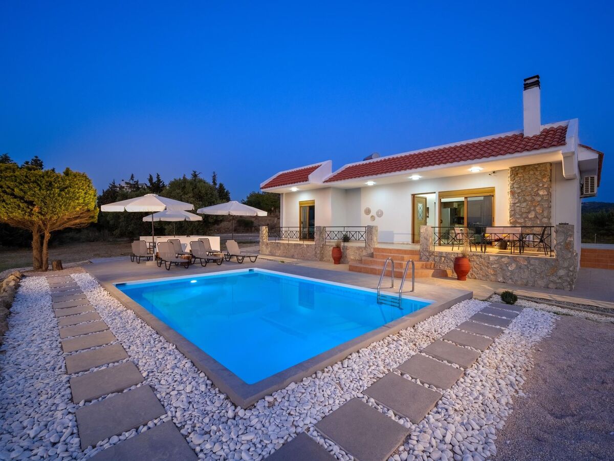 This unique villa is set in the calm and serene area of Pastida on a high point surrounded by hills; with views of olive groves, Filerimos, and beyond.