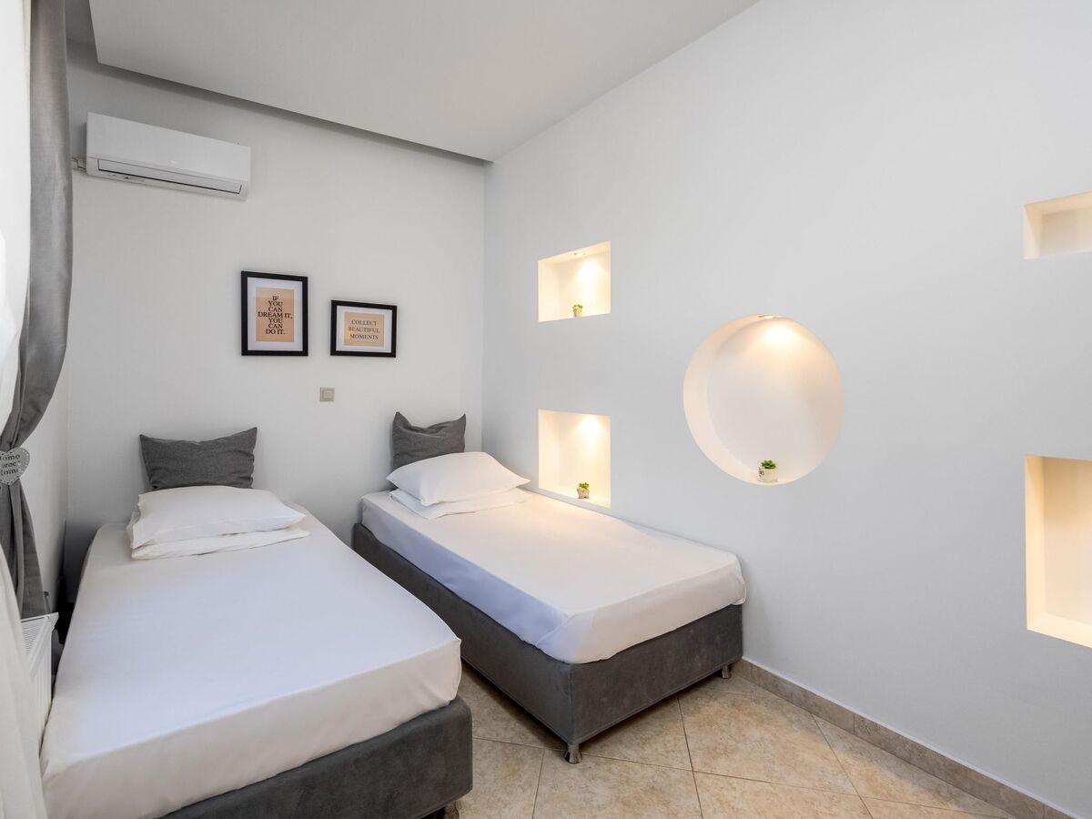 Outdoors, you’ll find a private swimming pool with its sunbeds to work on your tan under the rays of the Aegean sun.
