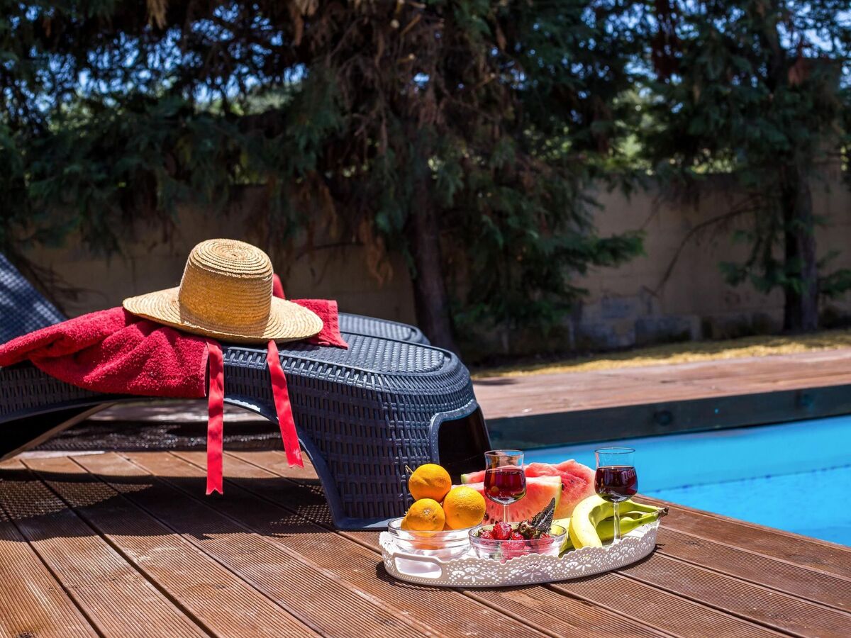 Outdoors, there is a private swimming pool with some sunbeds to soak up the Greek sun.