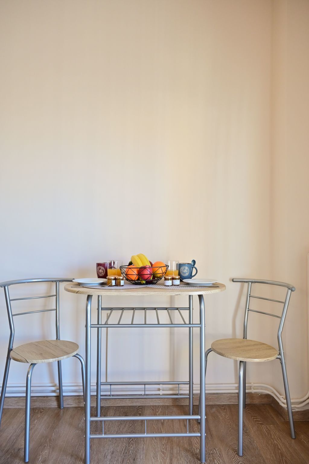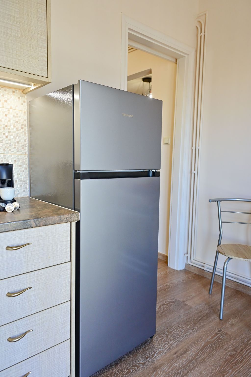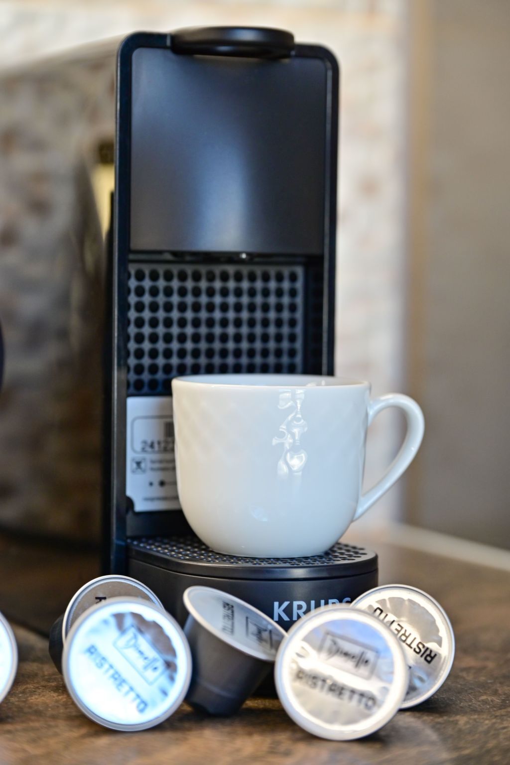 The living room offers a cozy setting for relaxing evenings, while the presence of a coffee machine and electric kettle in the fully equipped kitchen allows for the easy preparation of coffee or tea at any time of day.