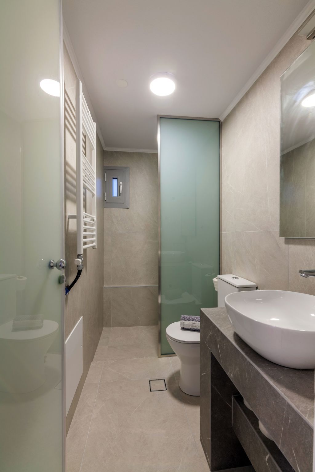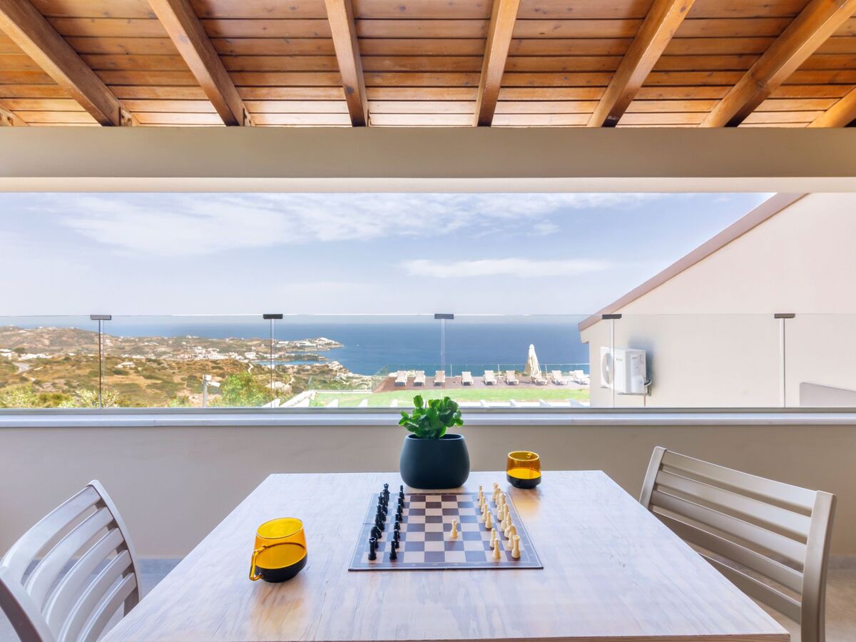 There is also a window over-looking the Cretan mountains and a large private balcony with a sitting area, where you can enjoy the unique Cretan sunset and the breathtaking sea view.