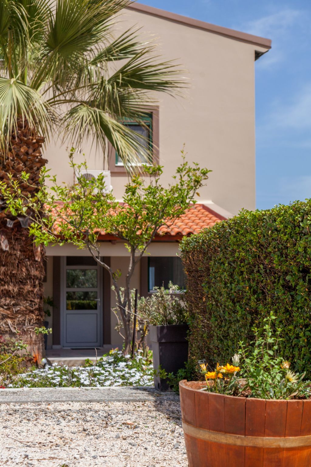 Outside, Villa Ourania is a true oasis! There are paved terraces and gardens with lawn for sunbathing.