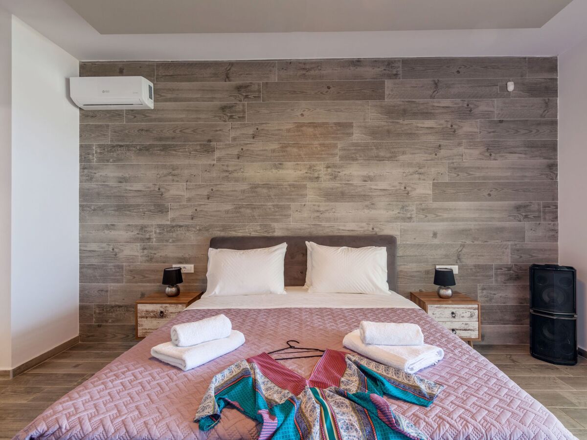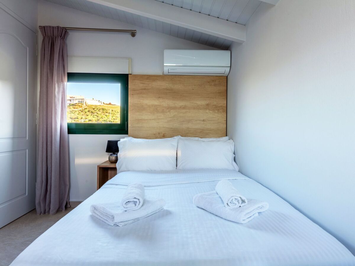 “Ourania” bedroom has a Queen bed, air-conditioning, a smart TV with satellite channels and Netflix App and a safe box.
