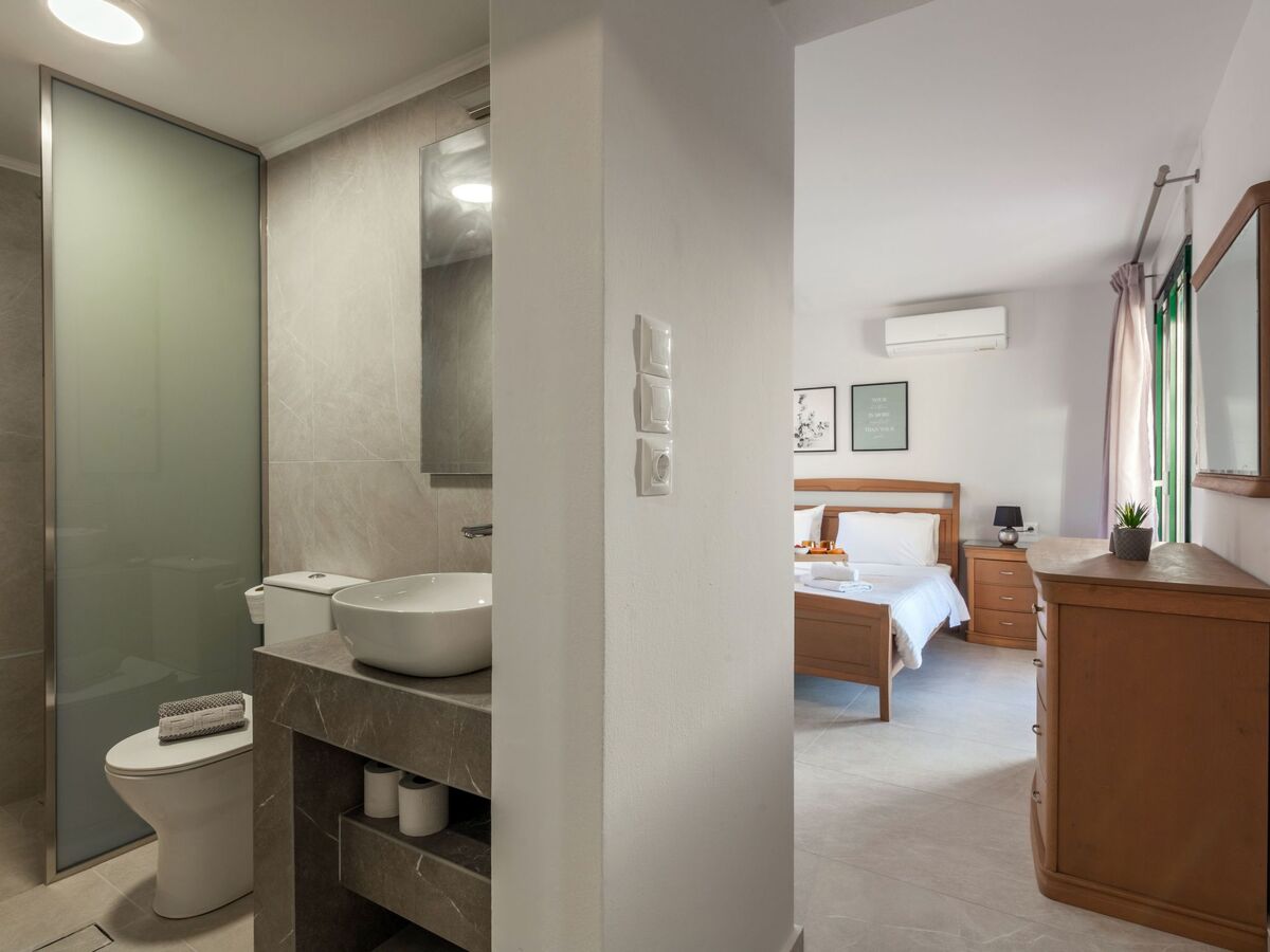 “Pantelis” bedroom has a Queen bed, air-conditioning, one hairdryer and its en-suite has a shower room, a toilet and a hand basin.