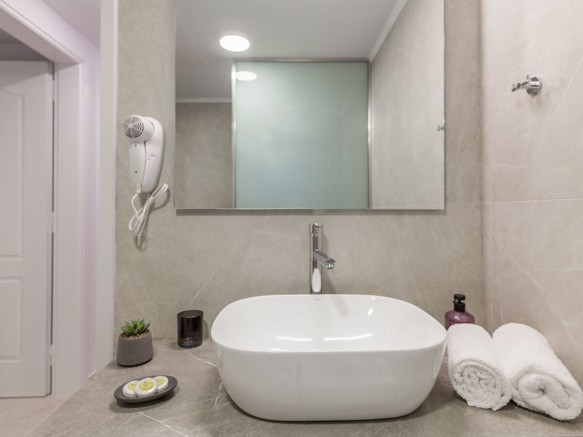 Finally, there is a bathroom with two separate shower rooms with rain showers, double hand basin and one hair dryer.