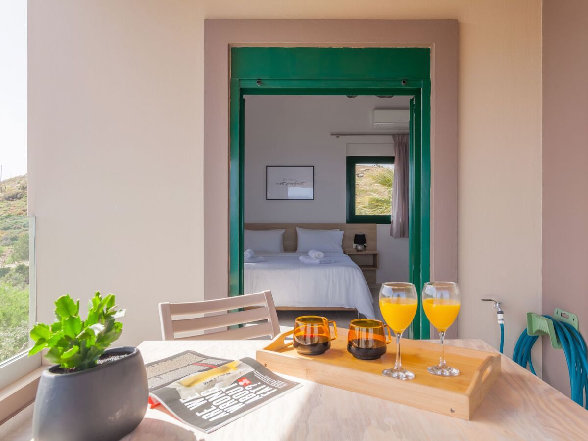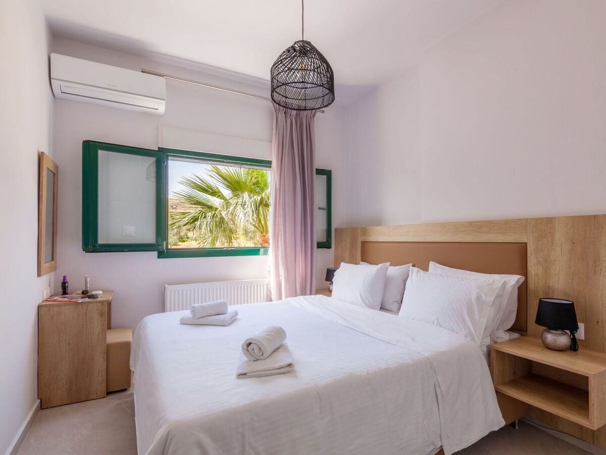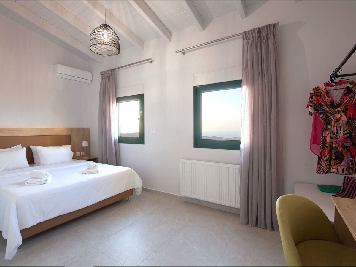 It has a Queen bed, air-conditioning and two cute windows over-looking to the beautiful bay of Ligaria and Agia Pelagia.