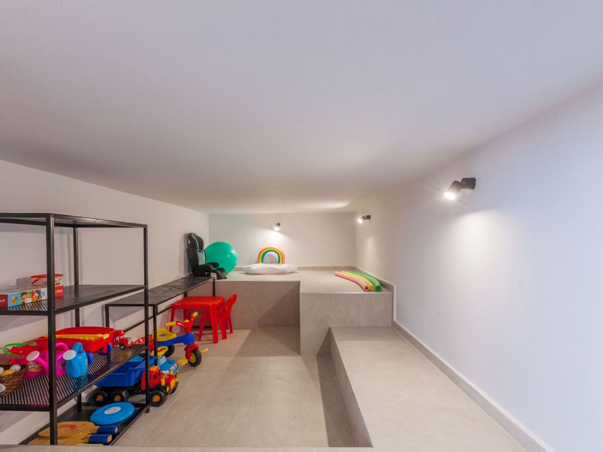 The low ceiling storage room which is placed also on this level has variety of kid’s toys, as well as pool toys and pool towels.
