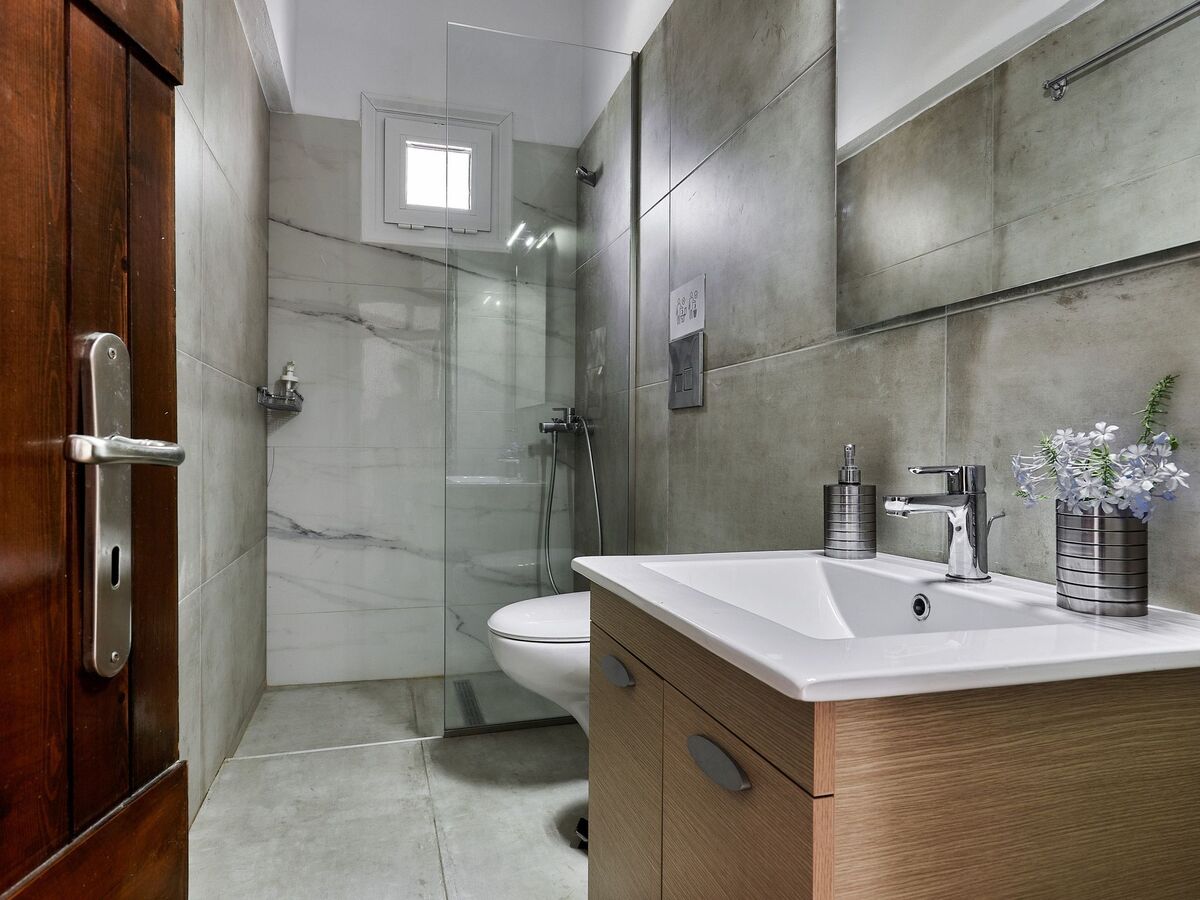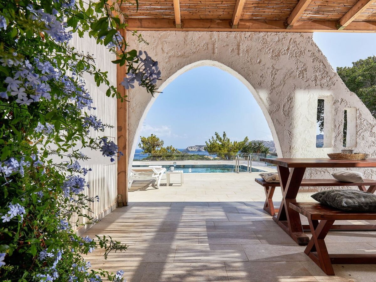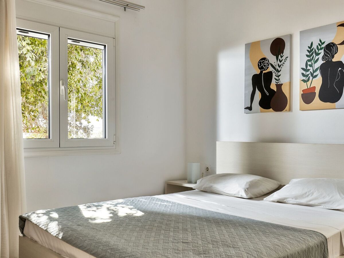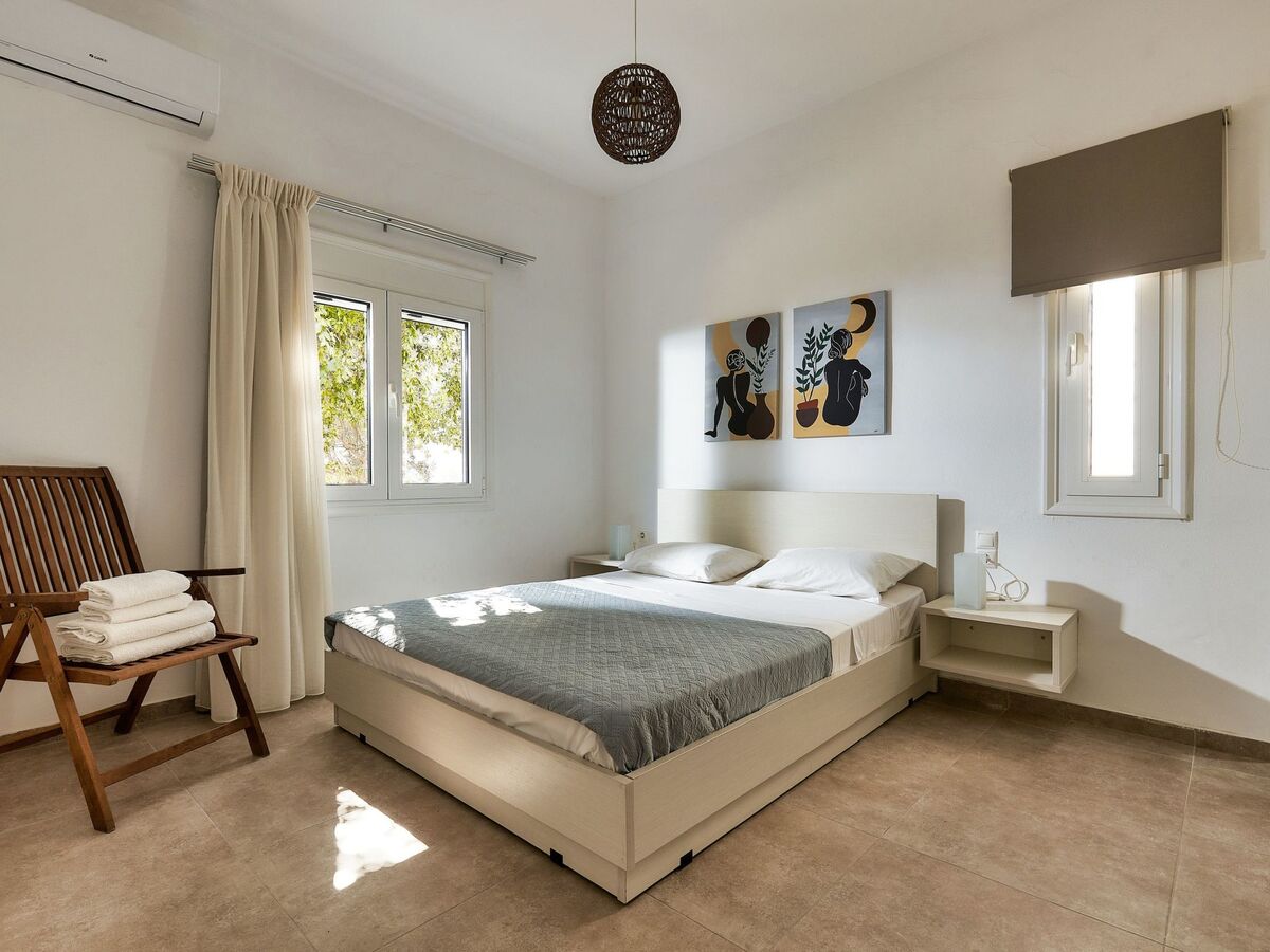 The Traditional Villa Elena (154sqm) features a private, heated swimming pool, a garden and a sea-view veranda, traditional style and comfortable setting with 3 bedrooms and a living room with 2 double sofa beds, thus able to host ideally up to 8 guests, with potential 2 additional guests if needed (up to 10 guests in total).