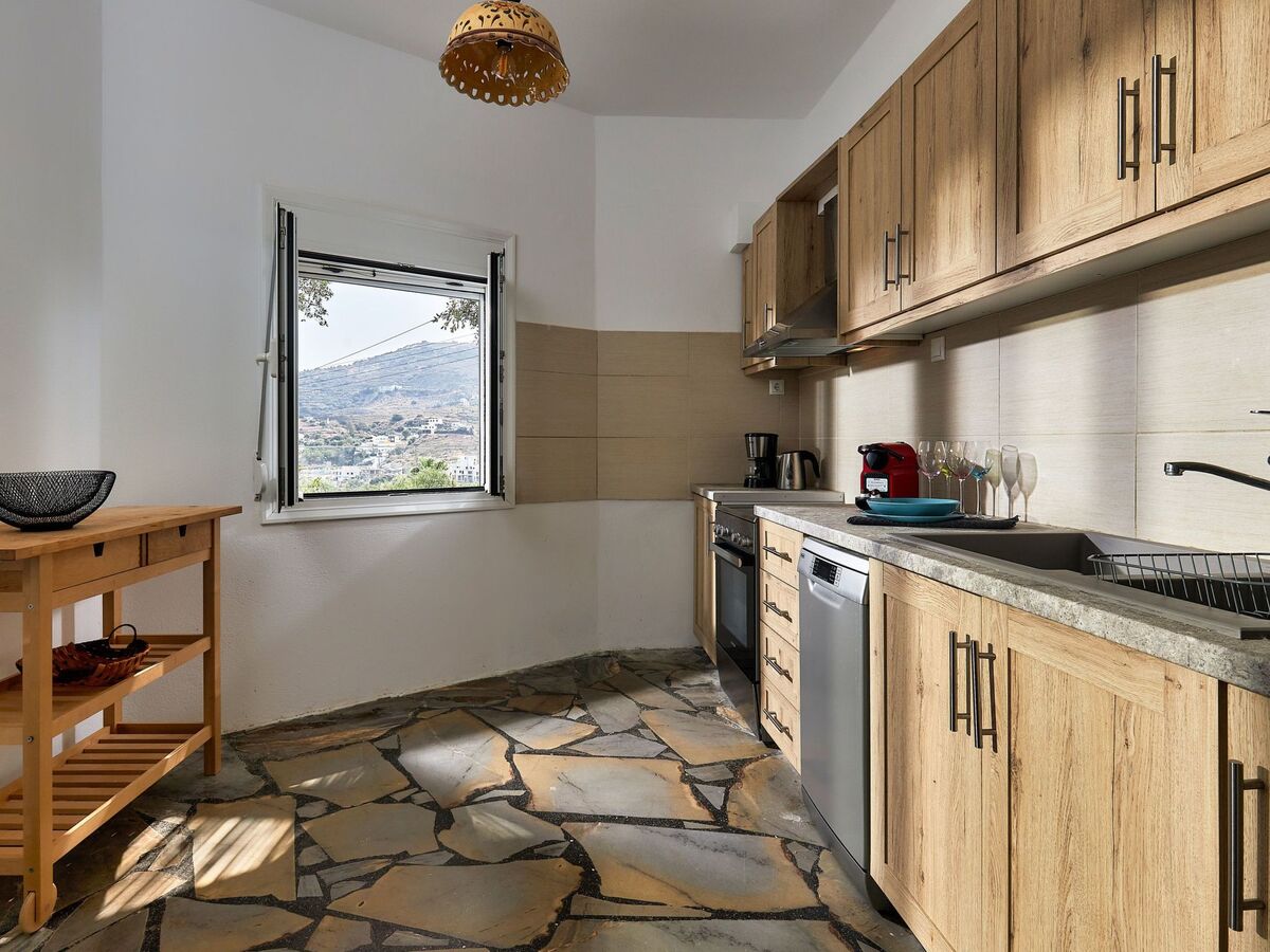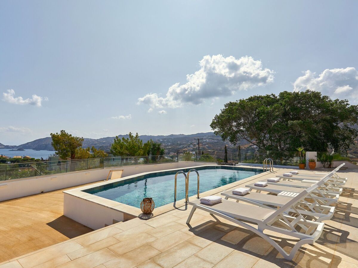 The spacious garden offers magnificent views of the Agia Pelagia bay and the surrounding mountains.